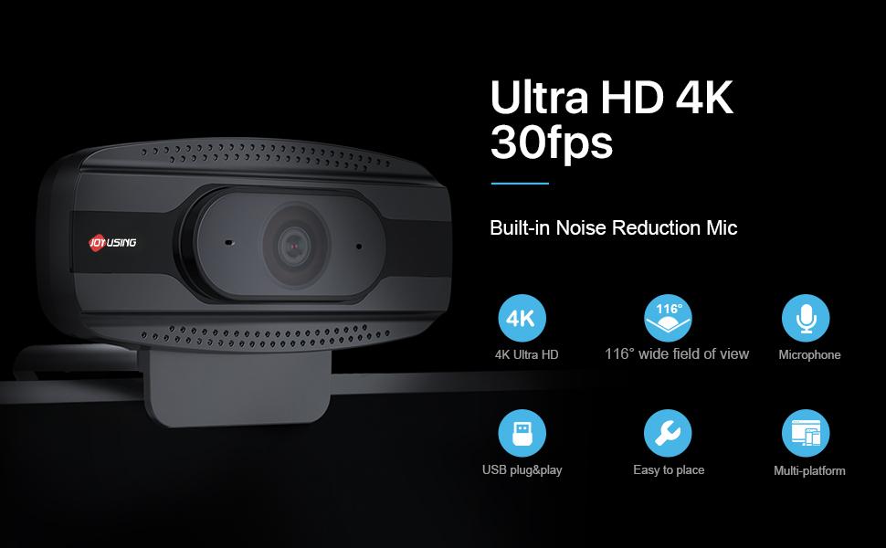 كاميرا ويب عالية الدقة من جويوسينغ بدقة 4 كيه مع ميكروفون، كاميرا ويب يو إس بي بدقة 8 ميجا بكسل لمتابعة المكالمات عبر الإنترنت، الاجتماعات، بث مباشر على زوم / سكايب/ يوتيوب...
