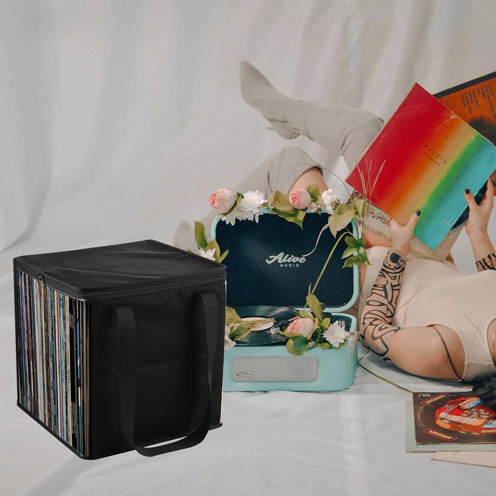 حقيبة تخزين تي زاين Vinyl Records لحمل تسجيلات الفينيل مقاس 12 بوصة تحمل ما يصل إلى 50 ألبوم من الفينيل