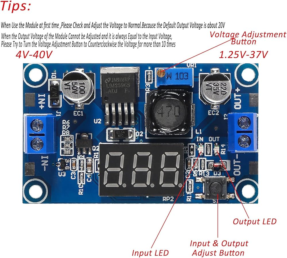 الخرج: تيار مستمر 1.25 فولت إلى 37 فولت الجهد قابل للتعديل باستمرار