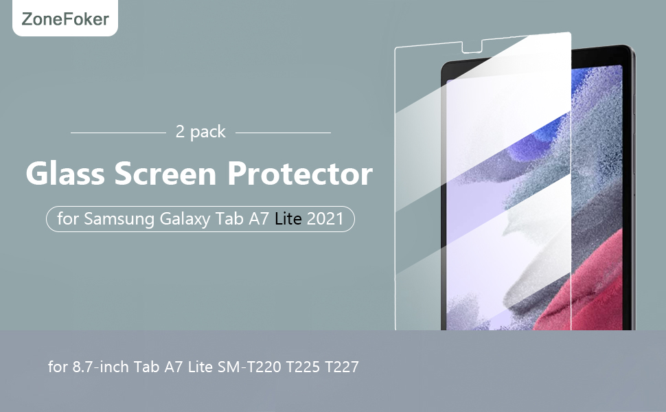 [عبوة من قطعتين] واقي شاشة الكمبيوتر اللوحي ZoneFoker Galaxy Tab A7 Lite 8.7 بوصة 2021 (SM-T220/SM-T225)، [مضاد للخدش] [سهل التركيب] [خالي من الفقاعات] زجاج مقوى لجهاز Samsung Galaxy Tab A7 Lite Tablet (شفاف)