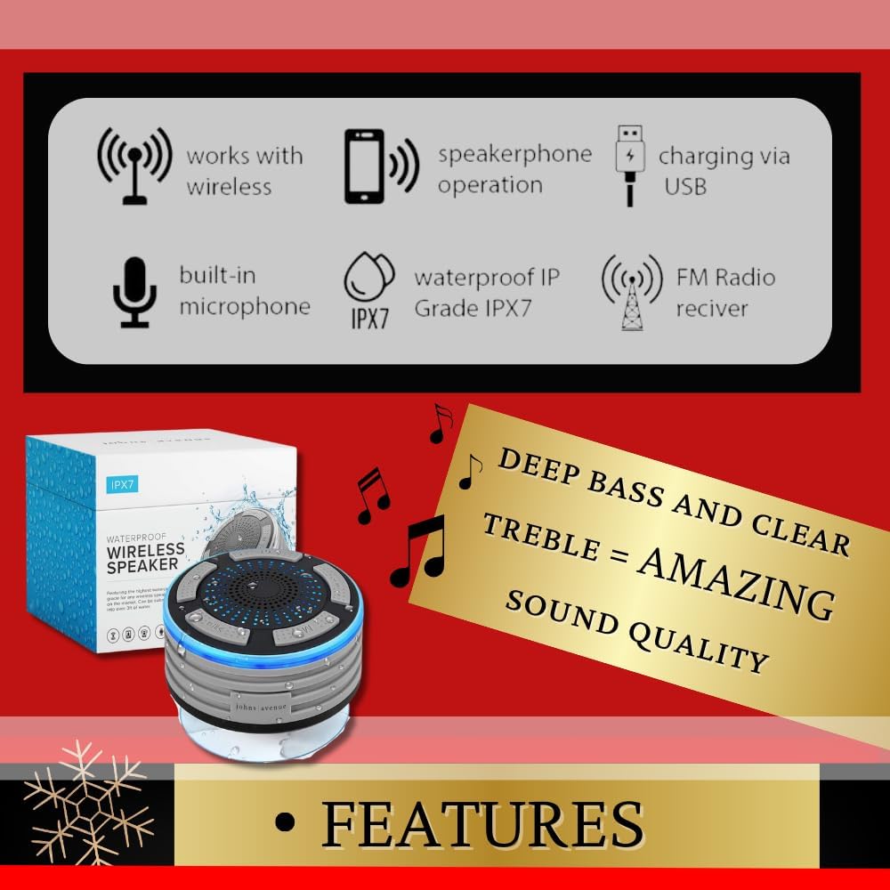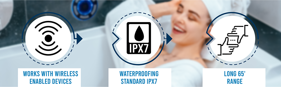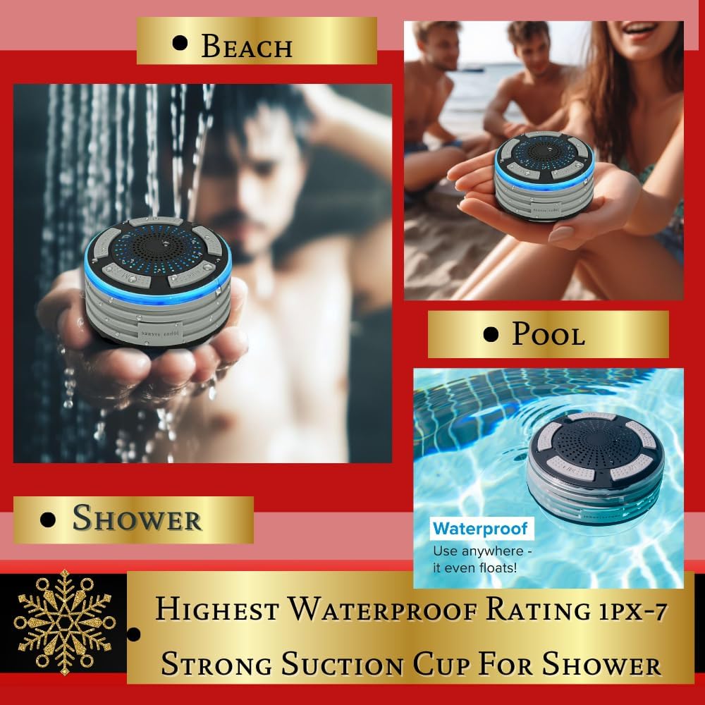 هل تريد أن تأخذها للسباحة؟ - مكبر صوت بلوتوث مقاوم للماء بنسبة 100% ويمكن استخدامه في أي مكان. ليس فقط مكبر صوت للاستحمام مع كوب شفط، بل مكبر صوت عائم أيضًا. جربه في الجاكوزي/الحمام/البحيرة/النهر أو كمكبر صوت بلوتوث لحمام السباحة باعتباره سباحًا ذو خبرة.