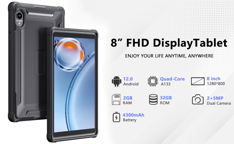 【لوحة مسطحة عالية الدقة 8 بوصة】جهاز لوحي 8 بوصة 1280*800 IPS (شاشة عالية الدقة)، يدعم مشاهدة مقاطع الفيديو ومشاهدة مجموعة متنوعة من المسلسلات التلفزيونية، تجربة مشاهدة رائعة للعمل والترفيه. بالإضافة إلى ذلك، هناك كاميرات مزدوجة بدقة 2 ميجابكسل + 5 ميجابكسل. مثالي لمكالمات الفيديو والتقاط صور السيلفي مع العائلة والأصدقاء لمشاركة الأوقات السعيدة.