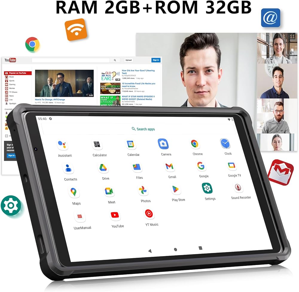 【نظام Android 12 الجديد】يستخدم هذا الجهاز اللوحي Android 12 وحدة معالجة مركزية قوية رباعية النواة بتردد 1.5 جيجا هرتز، وذاكرة وصول عشوائي سعتها 2 جيجا بايت، وذاكرة تخزين داخلية 32 جيجا بايت قابلة للتوسيع حتى 512 جيجا بايت. يعمل نظام Android 12 على جعل جهازك اللوحي أكثر سلاسة، كما يعمل المعالج القوي على تشغيل التطبيقات بشكل أسرع وأكثر سلاسة، مما يوفر لك تجربة ترفيهية أفضل. مع شهادة Google GMS، يمكنك تنزيل التطبيقات من Google Play للحصول على تجربة أكثر عبر الإنترنت.