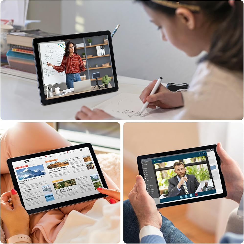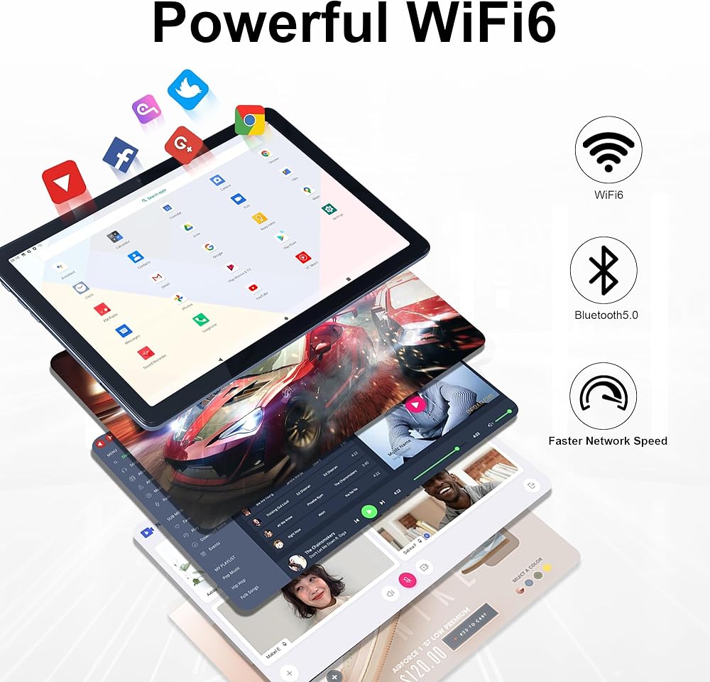 [زجاج WiFi6&2.5D أسرع] يعتمد الجهاز اللوحي تقنية WiFi6 المتقدمة، التي تغطي نطاق التردد 2.4G/5G الأصلي. بفضل دعم تقنية WiFi6، تم تحسين سرعة شبكة الجهاز اللوحي بشكل كبير، مما يسمح للمستخدمين بمشاهدة مقاطع الفيديو أو تنزيل الأفلام أو المشاركة في الترفيه عبر الإنترنت. تستخدم شاشة الكمبيوتر اللوحي زجاج 2.5D، مما يحسن بشكل فعال مقاومة الشاشة للخدش.