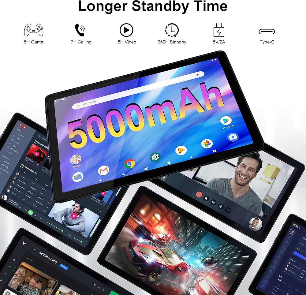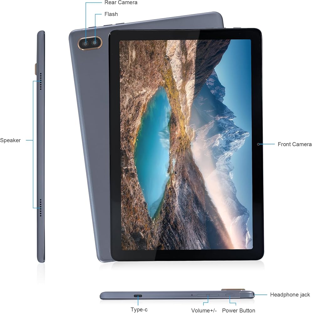 [بطارية كبيرة 5000 مللي أمبير في الساعة وكاميرا مزدوجة] الجهاز اللوحي مزود ببطارية 5000 مللي أمبير في الساعة، والتي يمكنها دعمك بسهولة لمدة تصل إلى 6 ساعات. يمكن للكاميرات الأمامية والخلفية المزدوجة بدقة 2 ميجابكسل + 5 ميجابكسل تسجيل لحظات الحياة الجميلة بوضوح، وهي جيدة لمكالمات السيلفي والفيديو مع الأصدقاء والعائلة.