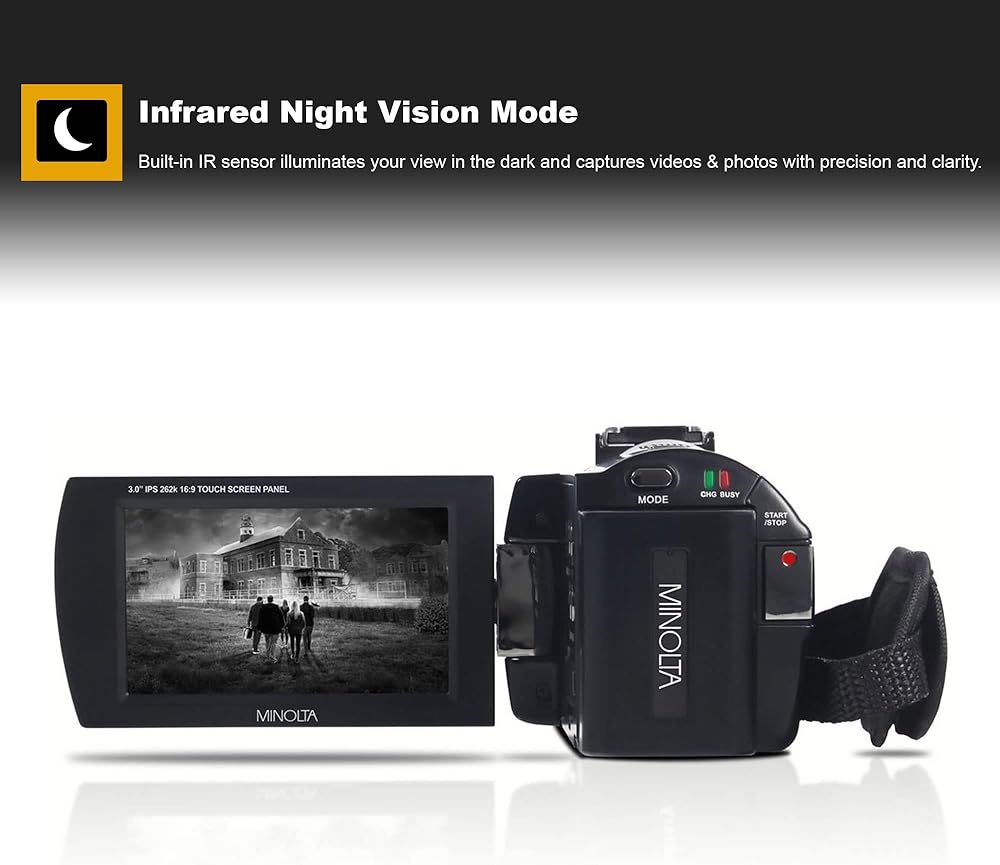 كاميرا فيديو مينولتا MN4K25NV الترا اتش دي 4 كيه للرؤية الليلية تلتقط مقاطع الفيديو والصور ليلاً أو نهارًا. مع دقة قصوى تبلغ 30.0 ميجابكسل، ودقة فيديو 4 كيه الترا اتش دي، وتقريب رقمي 16 مرة وتثبيت الصورة المضاد للاهتزاز يوفر صورًا رائعة. مصباح ليد بالأشعة تحت الحمراء بتغطية تصل إلى 35 قدم وشاشة LCD تعمل باللمس IPS 262k مقاس 3 انش مثالية للمشاهد الليلية وظروف الإضاءة المنخفضة. مع فتحة تخزين اس دي اكس سي بسعة قصوى 128 جيجابايت، يمكنك تسجيل ساعات من الفيديو وآلاف الصور. يتضمن بطارية ليثيوم أيون عالية السعة وشاحن وحافظة وبرنامج تحرير الصور وكابلات HDMI + USB.