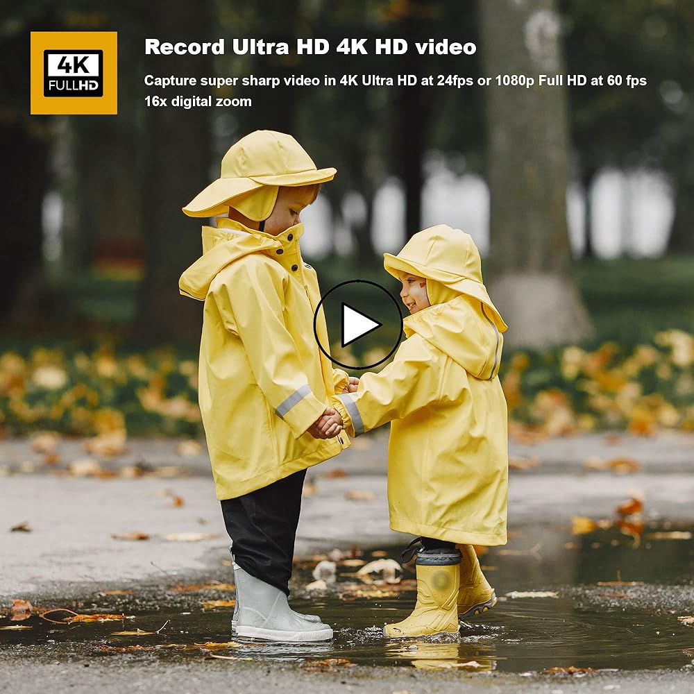 تسجيل فيديو UHD 4K HD: التقط فيديو فائق الدقة بدقة 4K UHD بمعدل 24 إطارًا في الثانية أو 1080 بكسل FHD بمعدل 60 إطارًا في الثانية وتقريب رقمي 16x
