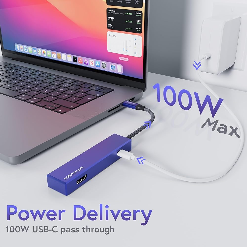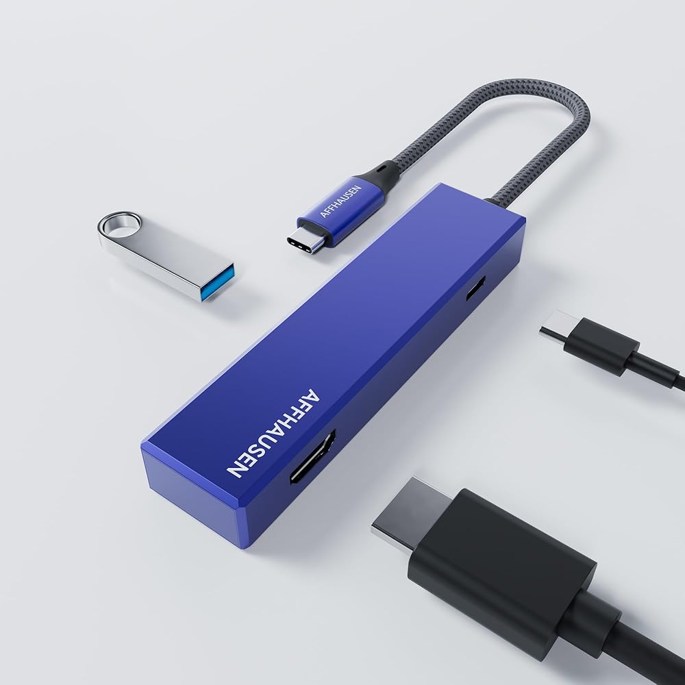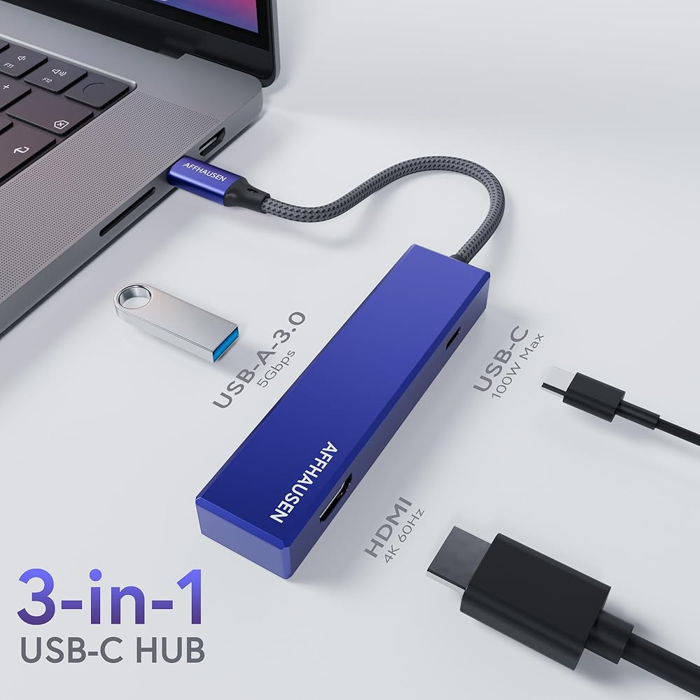 • 𝟑-𝐢𝐧-𝟏 𝐔𝐒𝐁-𝐂 𝐇𝐮𝐛: يتميز محول AFFHAUSEN USB-C بدقة 4K HDMI وGigabit Ethernet ومنفذ توصيل الطاقة عبر USB-C.