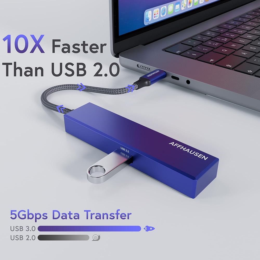• 𝐅𝐚𝐬𝐭 𝐃𝐚𝐭𝐚 𝐓𝐫𝐚𝐧𝐬𝐦𝐢𝐬𝐬𝐢𝐨𝐧 & 𝐂𝐡𝐚𝐫𝐠𝐢𝐧𝐠: هذا AFFHAUSEN يعد USB-C HM02 Hub صغيرًا ومحمولًا، مع منفذ USB A القديم يصل إلى 5 جيجابت في الثانية، وشحن PD يصل إلى 100 وات مع معيار PD 3.0.