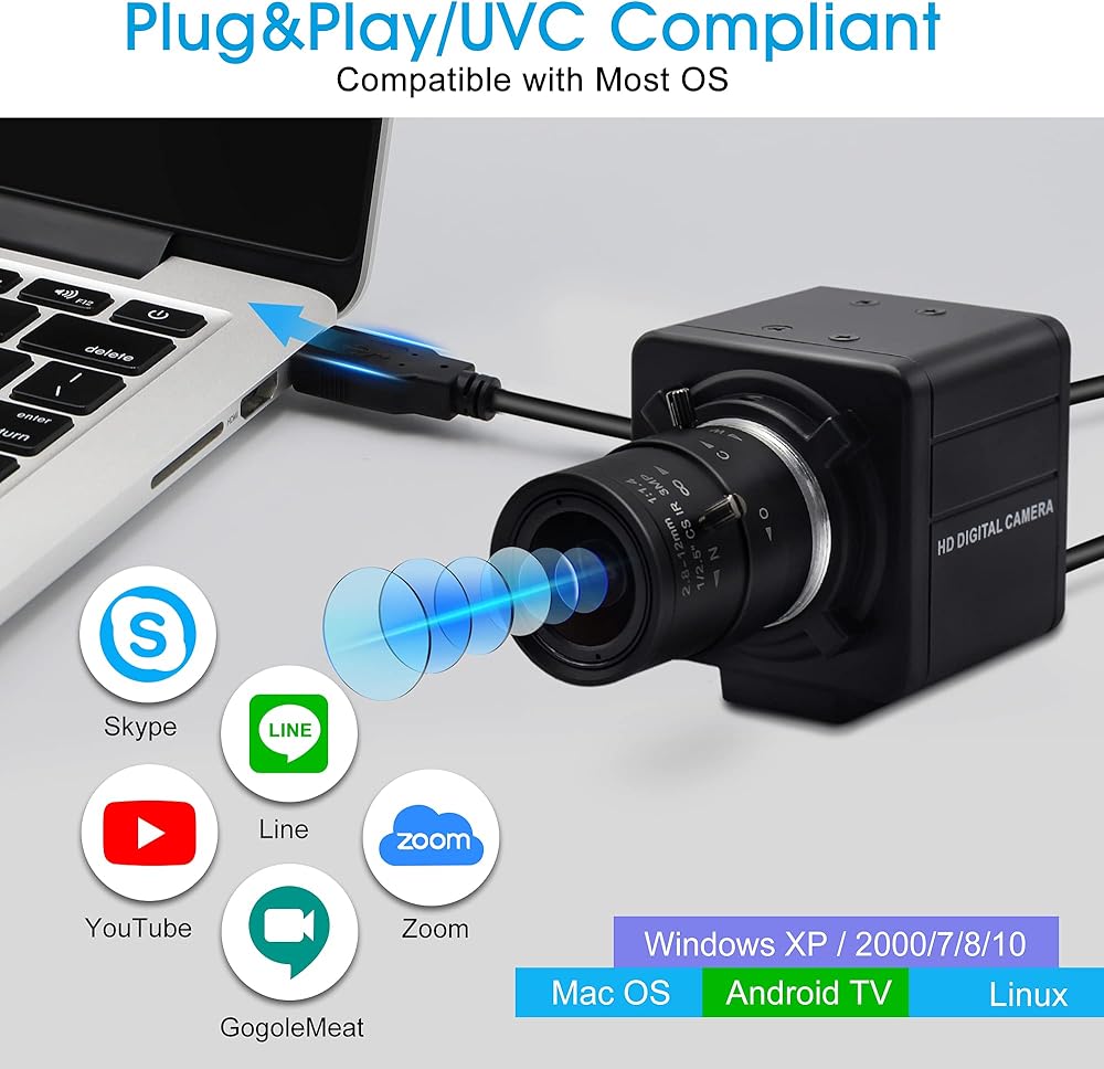 MJPEG/YUY2 Compression Format 2.8-12mm Varifocus Webcam: Webcamera_usb Web Camera with MJPEG/YUY2 compression format optional help to save more storage space,streaming with less demand on your computer provides faster and smoother video uploading.1080P FHD high resolution 2 megapixel varifocal camera,wide application for most project.2.8-12mm varifocal lens usb camera with IR-cut filter@650nm for true color day images/videos (Does not work with 850nm IR illumination),focus adjustable.