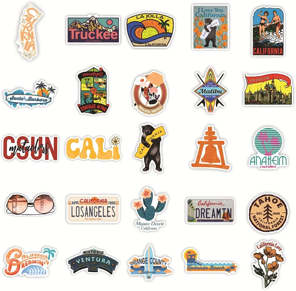 ملصقات سفر هوليوود من كاليفورنيا، 100 قطعة من ملصقات الفينيل المقاومة للماء بوتر لتزيين اللاب توب، يمكنك صنعها بنفسك لألواح التزلج، ملصقات كاواي لطيفة متعددة الالوان للسفر