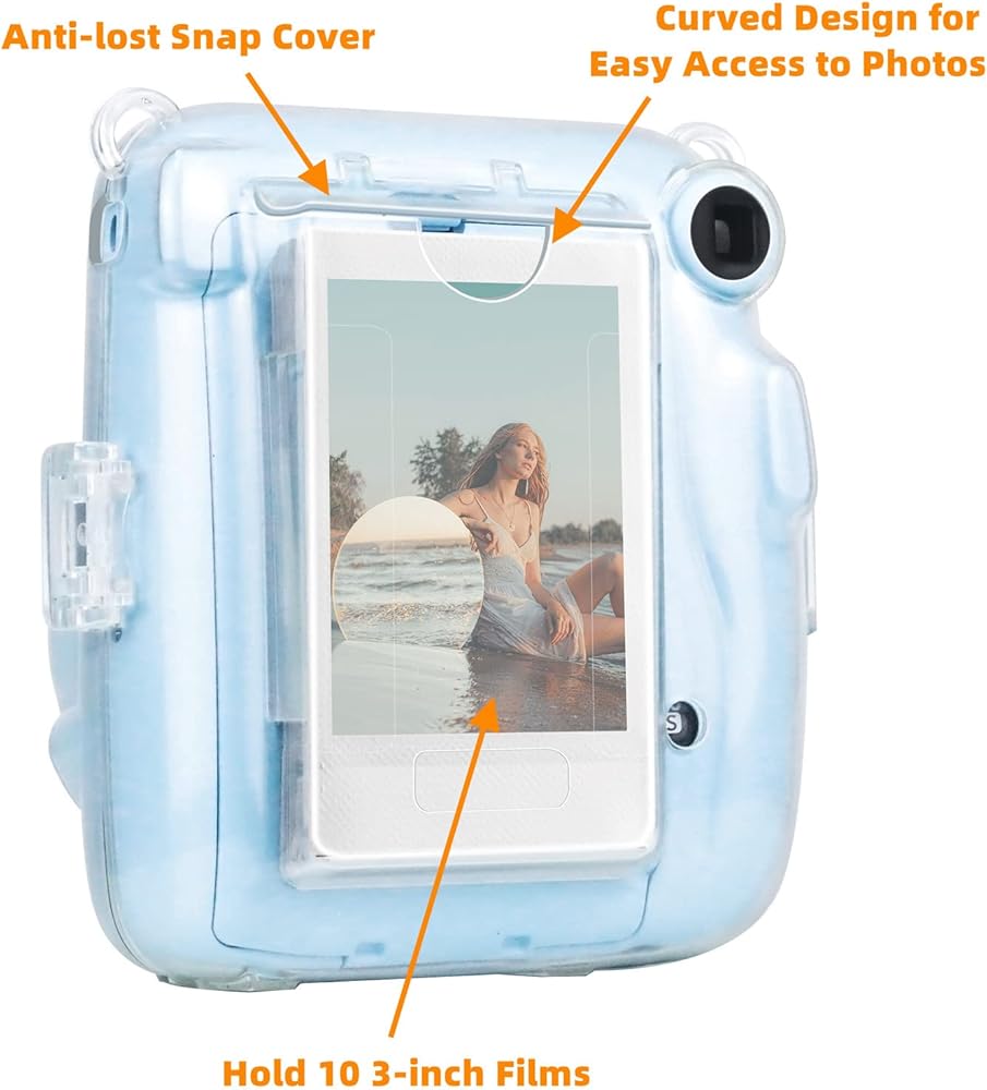 حافظة صلبة من بلاستيك بي في سي متينة وخفيفة الوزن. يحمي كاميرا انستاكس ميني 11 من الغبار والخدوش. تصميم شفاف كريستالي لإظهار الجمال الطبيعي للكاميرا الخاصة بك ولذوقك الأنيق