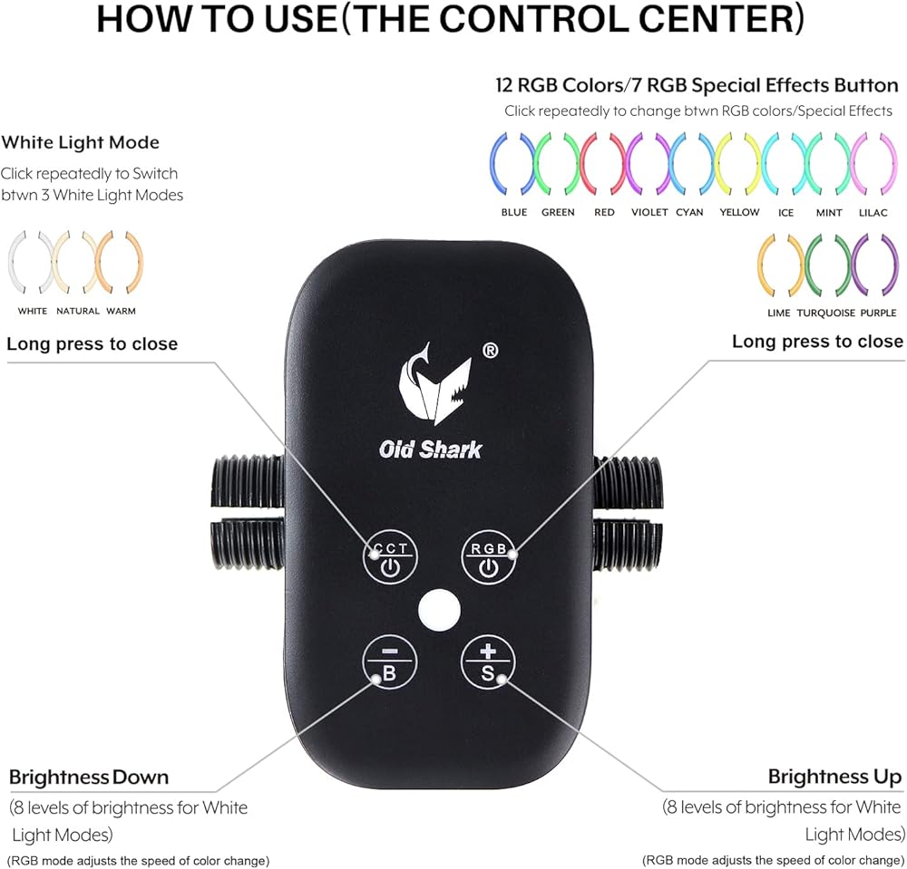 · 12 "RGB Ring Light: اختر من بين اثني عشر (12) لونًا RGB مختلفًا، وثلاثة (3) أوضاع إضاءة بيضاء، وسبعة (7) أوضاع إضاءة ذات تأثير خاص RGB، وسطوع قابل للتعديل.