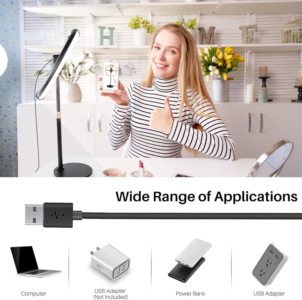 • 【مادة معدنية مطورة ومنفذ طاقة USB】هذا الضوء الدائري لسطح المكتب للهاتف مصمم بدعامة معدنية قوية وقاعدة مستديرة مرجحة بدلاً من حامل ثلاثي القوائم البلاستيكي، مما يزيد من الثبات حتى لا ينقلب. الارتفاع القابل للتعديل للحامل ثلاثي القوائم هو 8.6"-15.7". قم بإدخال كبل USB في مقبس الحائط باستخدام محول طاقة USB بقدرة 5 فولت أو في منفذ USB الموجود على جهاز الكمبيوتر الخاص بك وبنك الطاقة الخاص بك للشحن المريح والفوري.