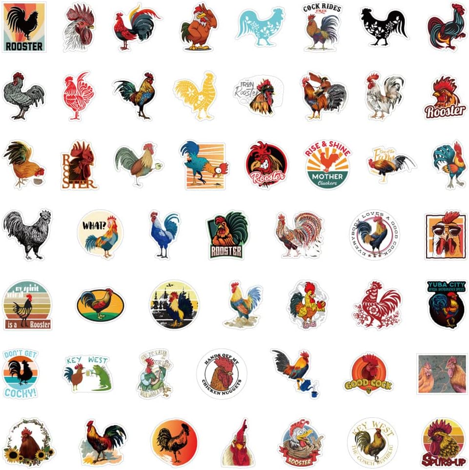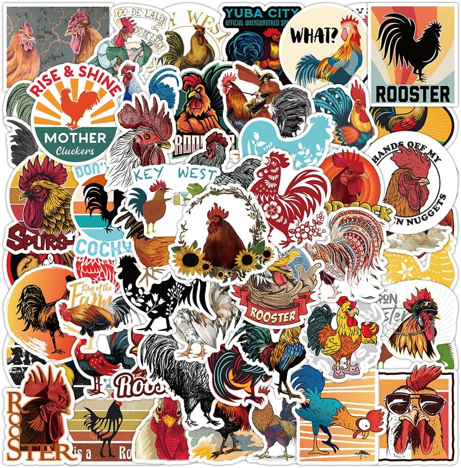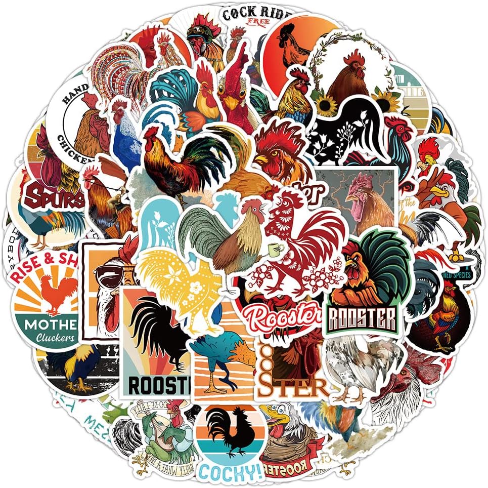 ❤50 قطعة من ملصقات الديك: نمط لطيف كما تظهر الصور وكل واحدة حوالي 2-3 انش، كمية كافية، لا توجد أنماط مكررة على الإطلاق، مثالية لتزيين مساحتك!