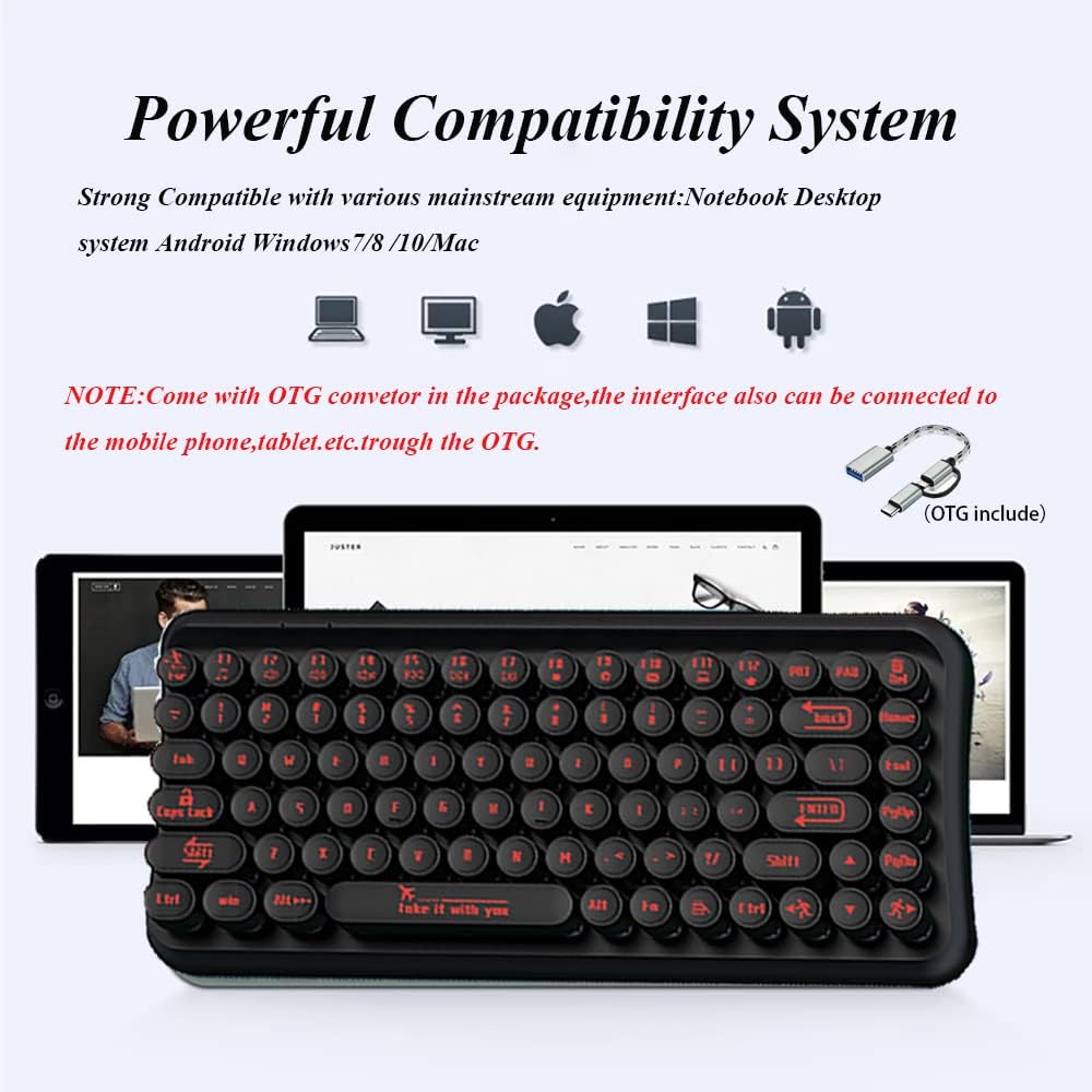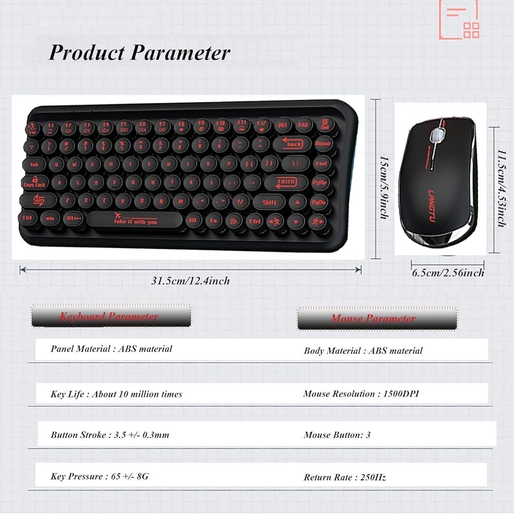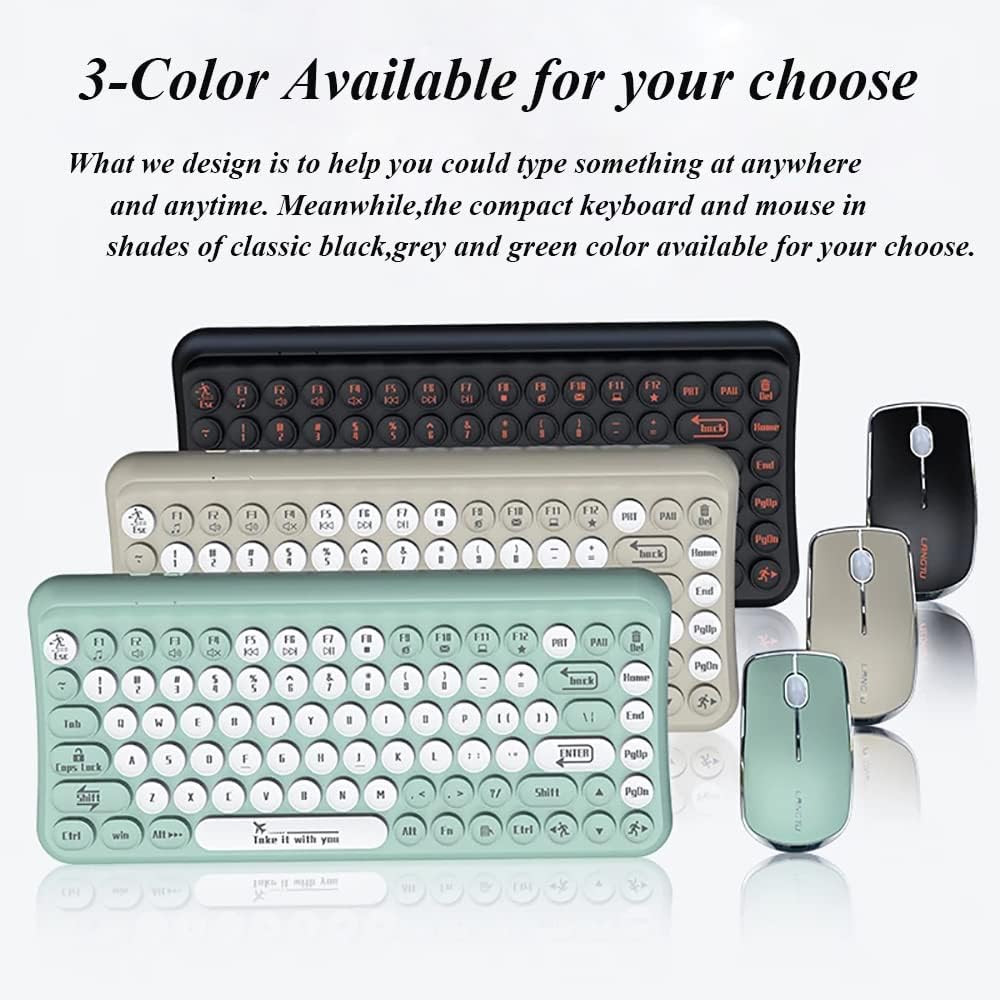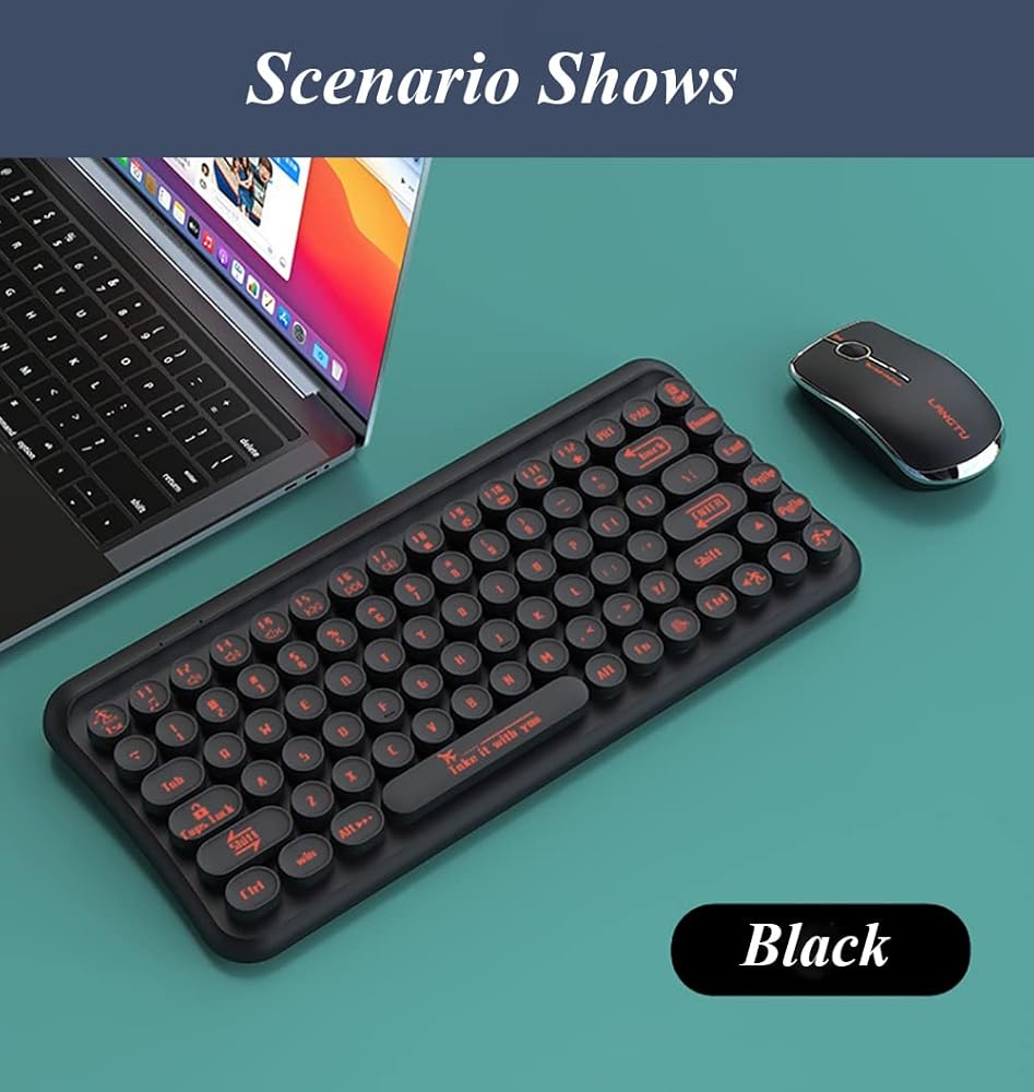 مجموعة لوحة مفاتيح وماوس للكمبيوتر اللاسلكي، لوحة مفاتيح كمبيوتر محمول صغيرة الحجم مكونة من 85 مفتاحًا وأغطية مفاتيح دائرية ريترو مع اتصال 2.4 جيجا هرتز وماوس بصري مثالي للاستخدام المنزلي والمكتب (أسود)