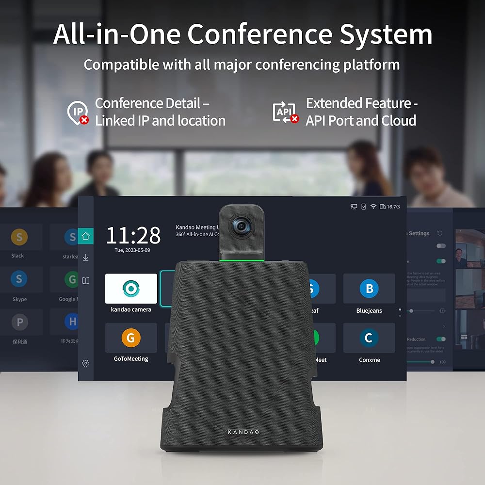 [FLEXIBLE MEETINGS, WEB-CONFERENCING SOLUTION] - KANDAO All-in-one conference room camera system is easy to use and flexible enough for medium & large meeting rooms, setting up your meetings has never been easier. With no extra laptop, this elegant conference control center features 4k HDR 360-degree panoramic webcam, microphone arrays, Hi-Fi speaker, and the built-in system is universally compatible with Zoom, GoToMeeting, Skype, Teams, Google Meet, etc all major video conferencing platforms.
