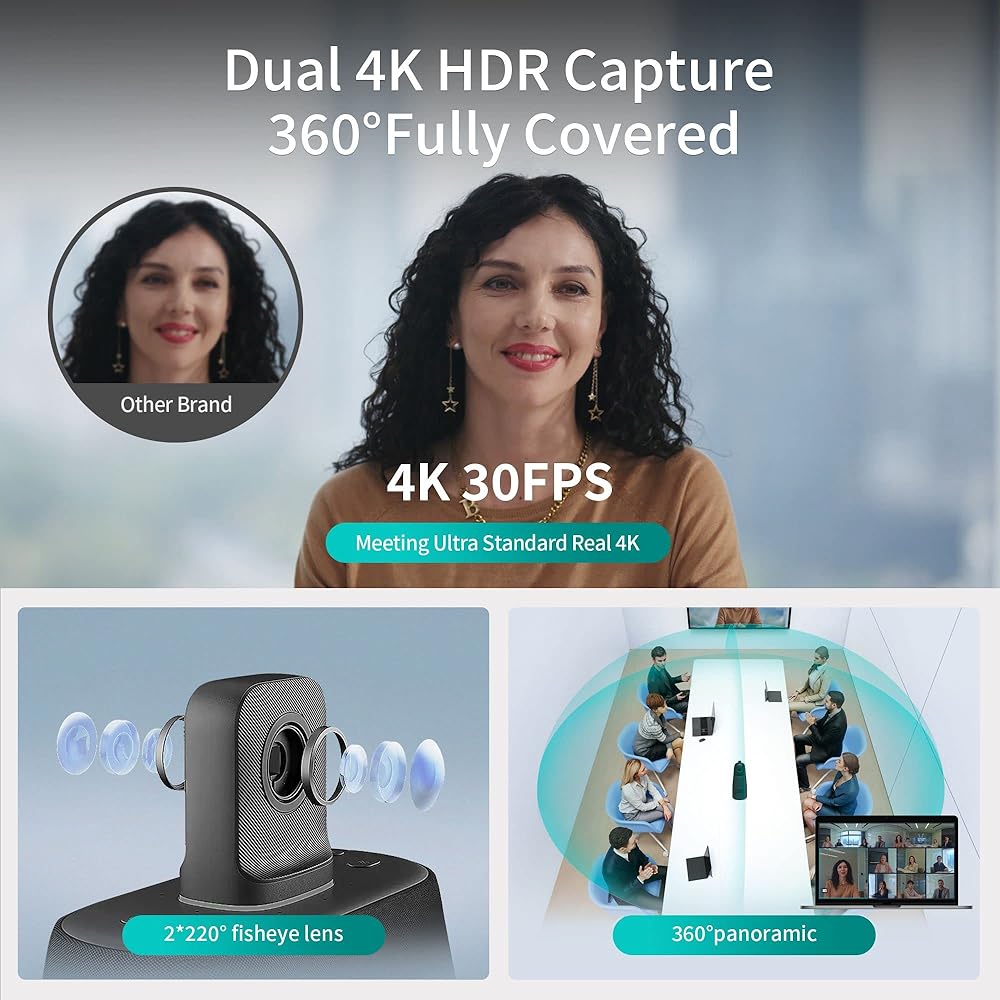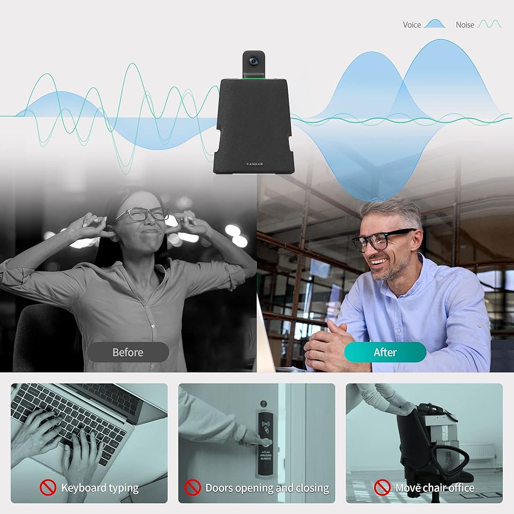 [PERFECT COLLABORATION, SHOWING 360-DEGREE WIDE FIELD VIEW] - Attendees do not need to squeeze together in front of a single webcam with KanDao Meeting Ultra 2*220° fisheye lens, this 360°panoramic meeting camera enables all attendees to join in the meeting equally. And 360 conference webcam output streams at 4K 30FPS HDR video to get rid of over-exposed images, and the built-in noise reduction algorithm creates a vivid and clear hybrid meeting experience, waving goodbye to blurry image quality.