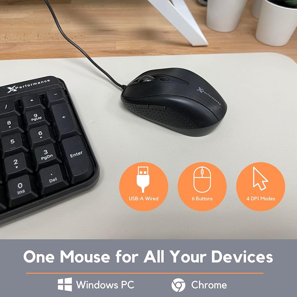 اكس 9 بيرفورمنس ماوس سلكي USB للاب توب - (لا يحتاج إلى بطاريات) ماوس USB 6 ازرار مع ازرار جانبية وحتى 3200 نقطة لكل بوصة - ماوس سلكي مريح بنقر ناعم لجهاز كروم بوك والكمبيوتر وماك - اسود غير لامع