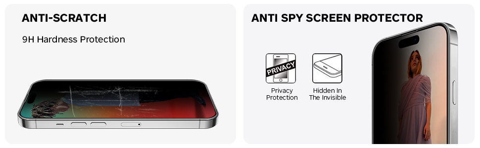 PRIVACY SHIELD: Anti-spy screen protector keeps your personal privacy information safe, anti-peep protective film is only visible to the people who face the screen directly, keeps your information from wandering eyes.