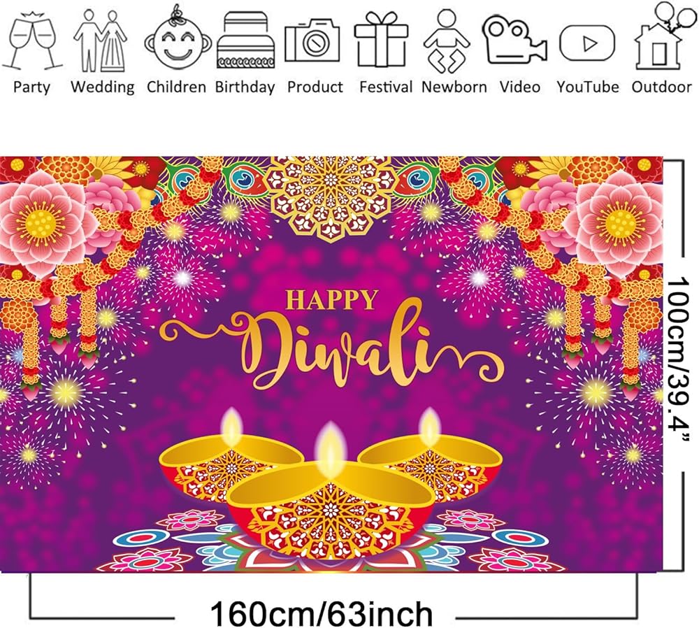 أبعاد لافتة هابي ديوالي - يبلغ مقاسها تقريبًا 160 × 100 سم/ 63 × 39.4 انش، ستبدو رائعة للغاية أينما وضعتها على الحائط أو النافذة أو تحت الشعاع.