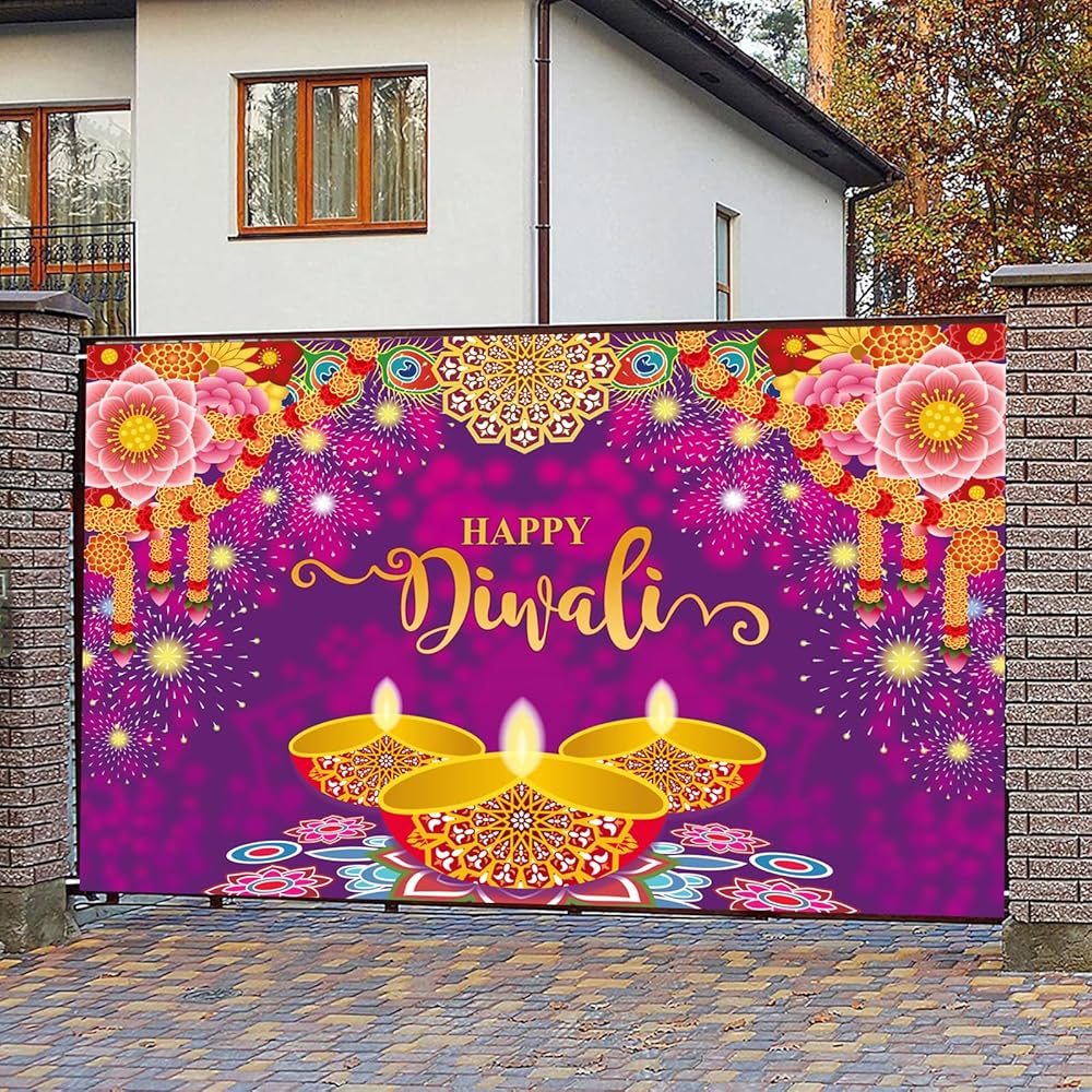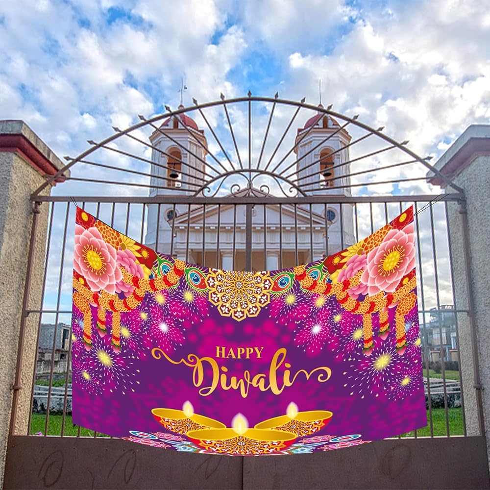 المادة - لافتة ديوالي هذه مصنوعة من نسيج البوليستر المتين، والذي يمكن استخدامه لفترة طويلة؛ خفيفة الوزن وقابلة للغسل ومقاومة للتمزق وسهلة الحمل.