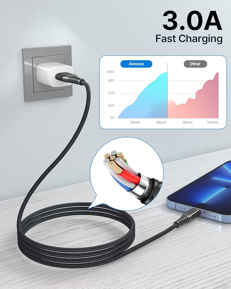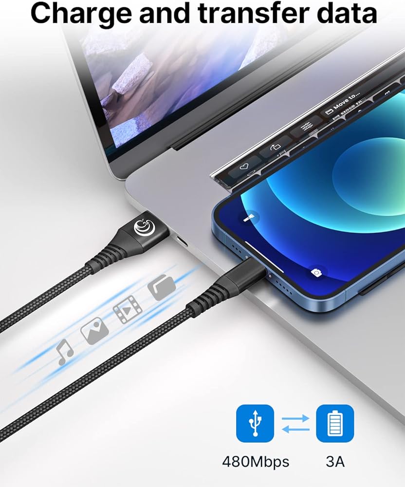 ➤ موصل لايتنينج: موصل الألومنيوم مقاوم للحرارة، وله توصيل جيد، يحافظ على فقدان البيانات إلى الحد الأدنى، علاوة على ذلك، يمكن إجراء الشحن والمزامنة بواسطة كابل واحد في وقت واحد.