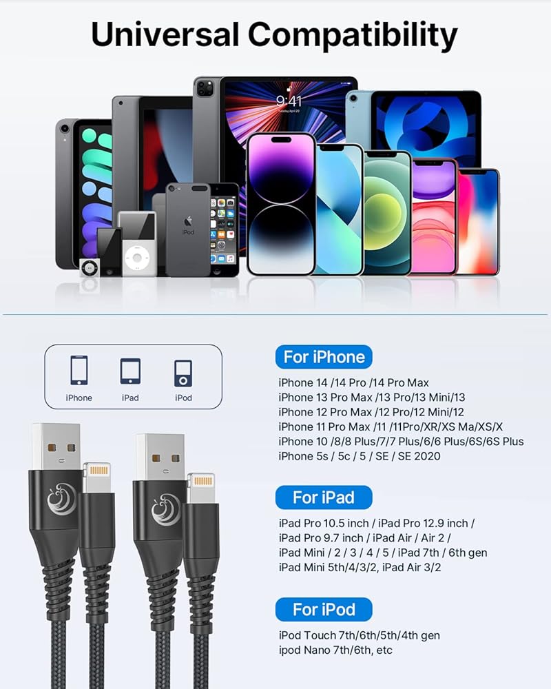 ➤ متانة فائقة: نقاط ضغط معززة مع عمر افتراضي أكثر من 10000 انحناء تجعل سلك ايفون أكثر متانة عدة مرات من أي شيء آخر في السوق.