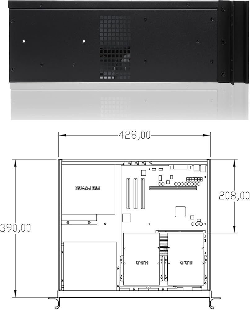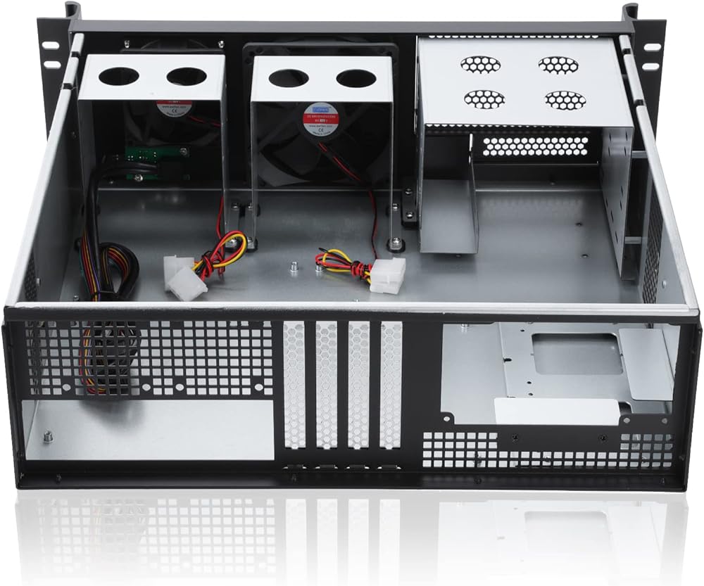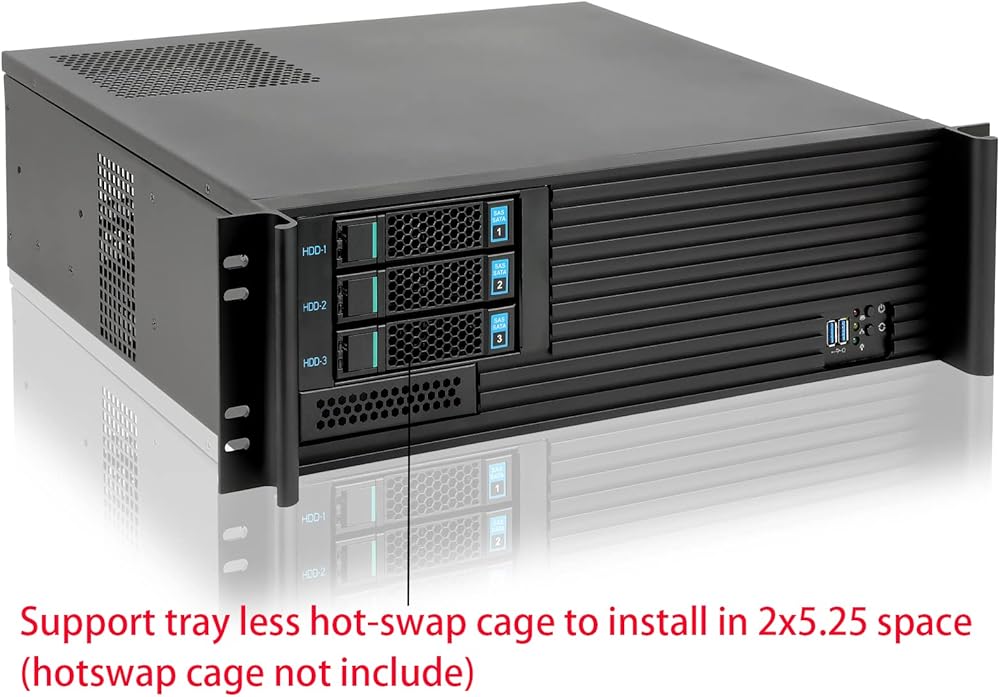 - تحتوي علبة خادم 3U على فتحة محرك خارجية 2x5.25"+1x3.5" بالإضافة إلى فتحة محرك داخلية 4x3.5"+1x3.5" أو 2x2.5"