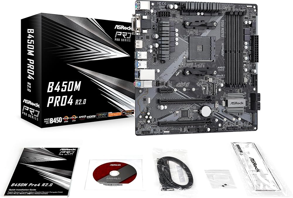 رقم الجزء Mfr: B450M PRO4 R2.0 ميزة فريدة: ASRock USB 3.2 Gen2 - ASRock USB 3.2 Gen2 Type-A Port (10 جيجابت/ثانية) - ASRock USB 3.2 Gen2 Type-C Port (10 جيجابت/ثانية) ASRock Super Alloy - خنق الطاقة Premium 42A - PCB باللون الأسود الياقوتي - PCB من القماش الزجاجي عالي الكثافة - 2oz النحاس PCB ASRock Ultra M.2 (PCIe Gen3 x4) حماية ASRock الكاملة للارتفاع (لجميع منافذ USB والصوت ومنافذ LAN) ASRock Live Update & APP Shop CPU: يدعم معالجات AMD AM4 المقبس Ryzen 2000 و3000 و5000 من سلسلة معالجات سطح المكتب Digi Power تصميم 10 مراحل للطاقة مجموعة الشرائح: AMD Promontory B450