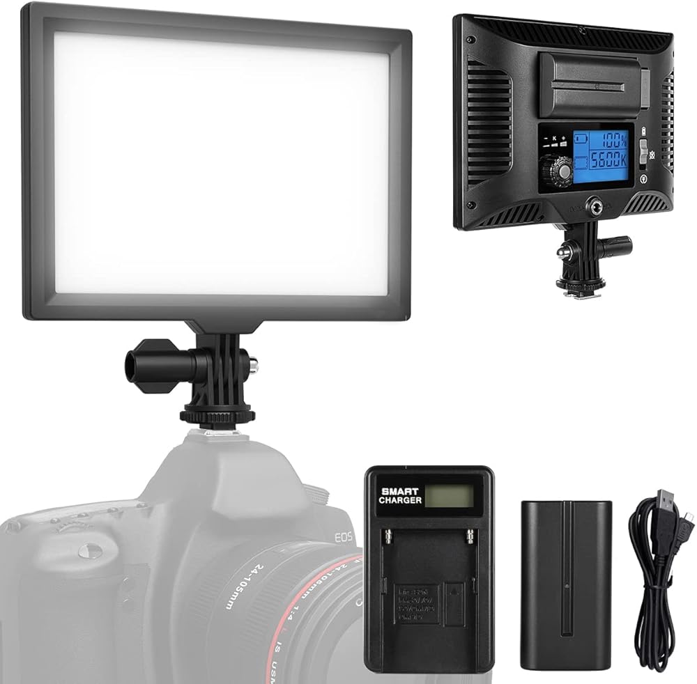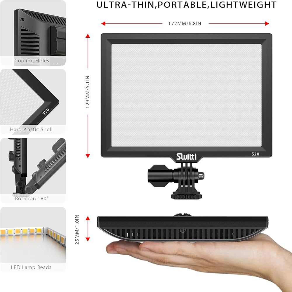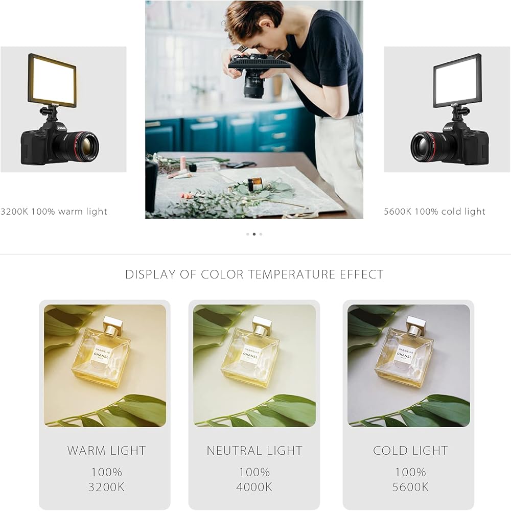 【محمول للحمل】مصباح الفيديو الصغير رفيع للغاية وصغير الحجم 6.8 × 5.1 × 1 انش، الوزن 256 غرام. خفيفة الوزن، يمكنك وضعها في حقيبة وحملها في أي مكان.