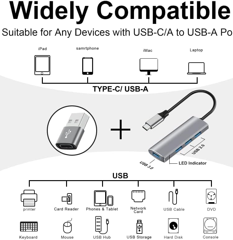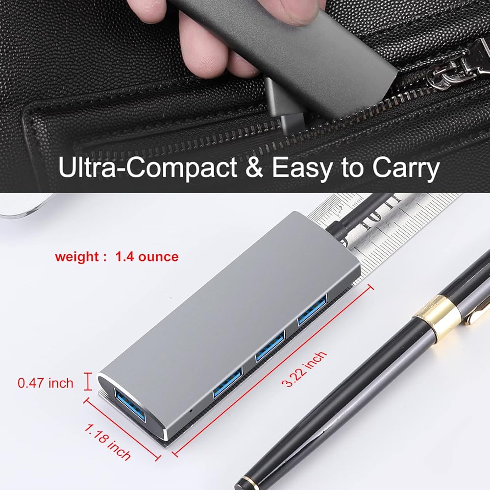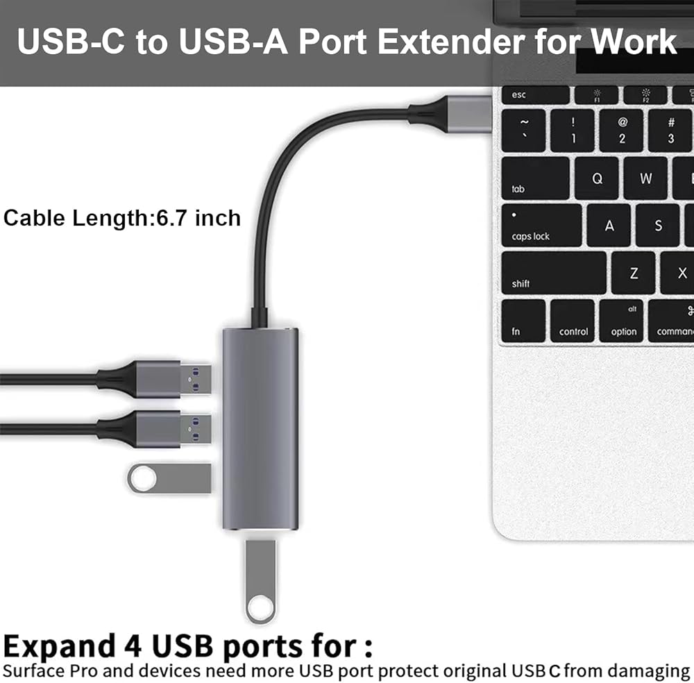 【ما تحصل عليه: 1 حزمة قاعدة جديدة فائقة النحافة من سبائك الألومنيوم USB C Hub متعدد المنافذ وحزمة واحدة USB-C أنثى إلى USB ذكر، يدعم مقسم USB 4 منافذ USB، ضماننا الخالي من القلق لمدة 12 شهرًا وعملاء ودودين. خدمة.