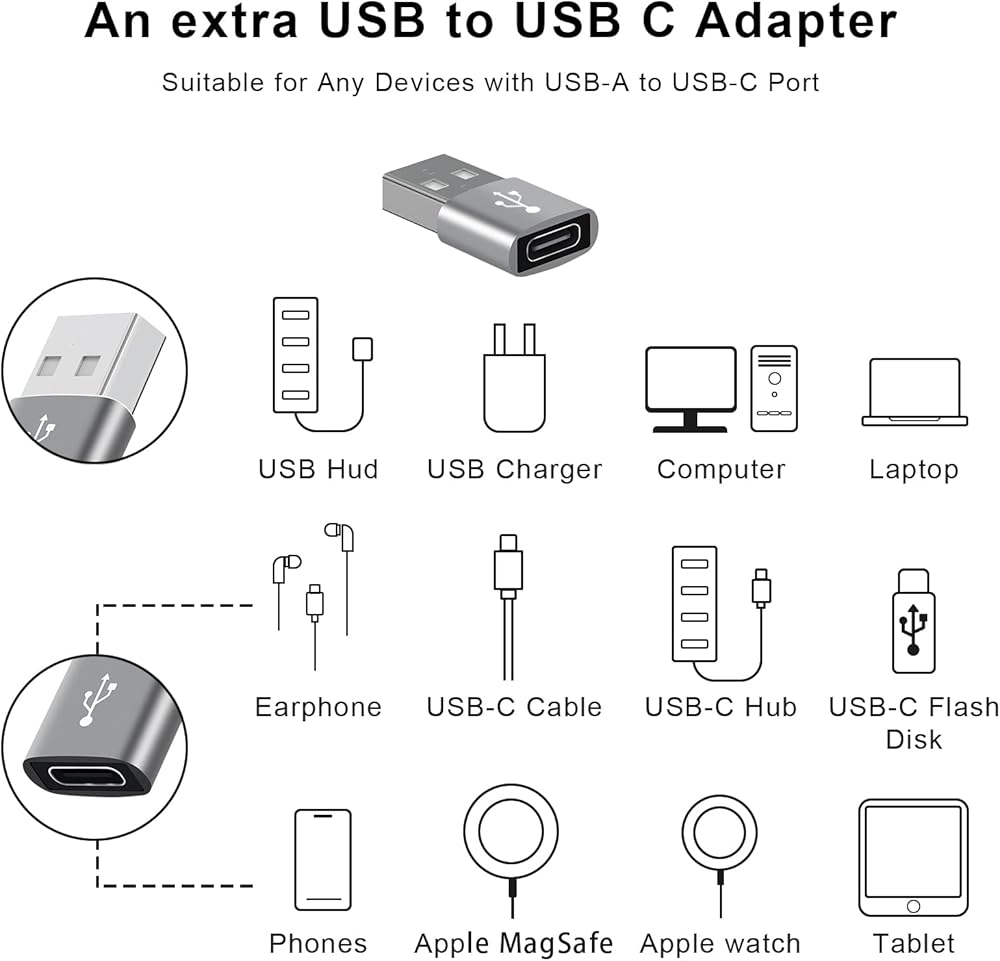 【توافق واسع】: مثالي للأجهزة التي تدعم USB-C/USB-A. متوافق مع MacBook Pro 2021/2020/2019/2018/2017 والإصدارات الأقدم، وMacBook Air 2020/2019/2018/2017 والإصدارات الأقدم، وMacBook 2018/2017 والإصدارات الأقدم، وiPad Pro 2021/2020/2019/2018، وiPad mini 6، وiMac 2021 /2020/2019/2018/2017، Google Pixelbook، Dell XPS 13/XPS 15، Samsung Galaxy S10/S10/Note 10، Samsung Chromebook Pro، Lenovo Yoga، Surface Book 2 وغيرها من الهواتف/أجهزة الكمبيوتر المحمولة/الأجهزة اللوحية.