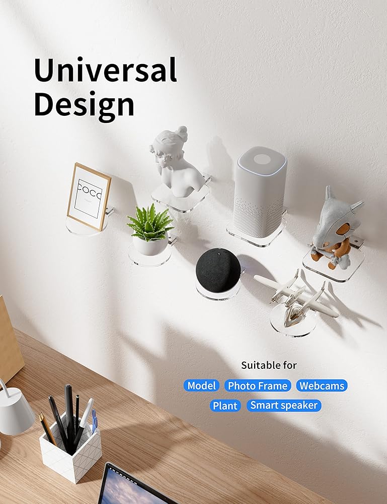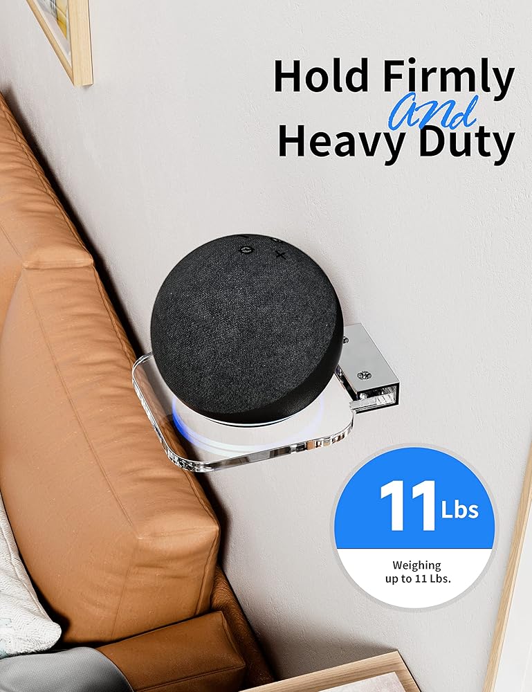 صلب وآمن وقوي وآمن - عالي التحمل بسعة 20 رطل، مشبك معدني، أكريليك دائري شفاف سميك يوفر حماية لا مثيل لها ضد الانزلاق لأجهزتك. تحتوي العبوة على 4 براغي، ومشبك معدني، وأكريليك سميك لإعداد حامل مكبر الصوت الخاص بك وتنظيمه بسرعة.