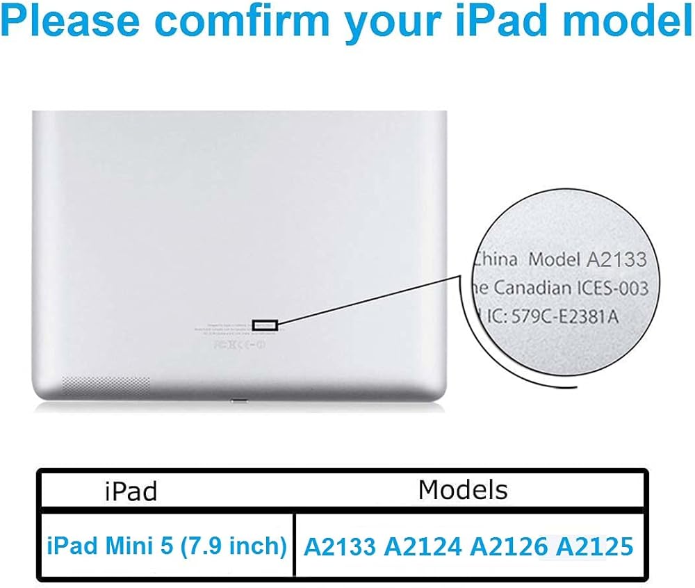 • متوافق مع آيباد ميني 5 2019 A2124 A2125 A2126 A2133، هام: يرجى التحقق من رقم الموديل قبل شراء هذا المنتج. وستجد رقم الموديل على ظهر جهازك.