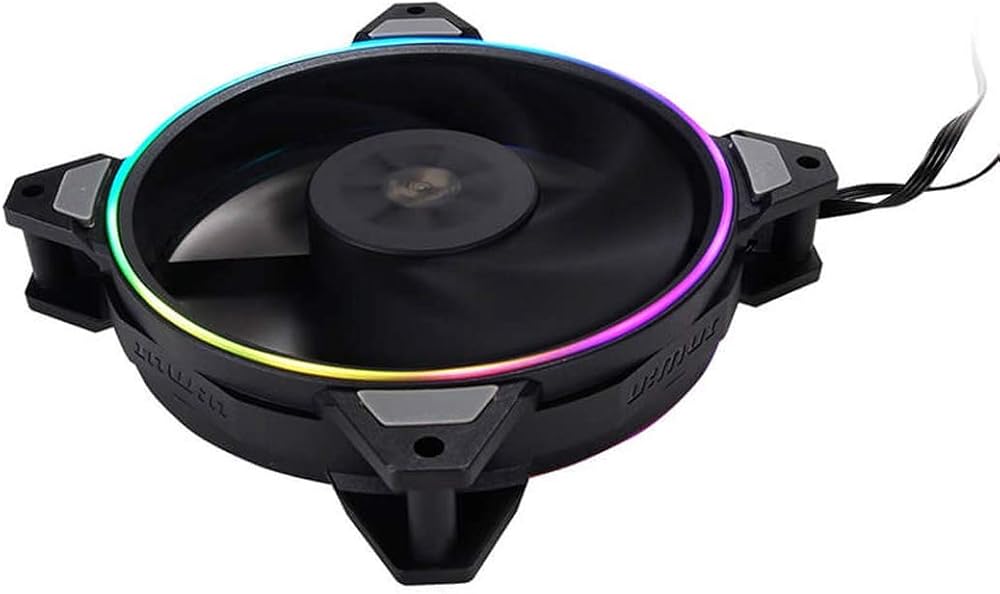 تأثير الإضاءة الدائري القابل للتصوير مكمل بشفرات مروحة سوداء لإضافة لمسة ثابتة لإضاءة RGB في بناء الكمبيوتر. يوفر التصميم ذو الحلقات المزدوجة للمستخدمين خيار التثبيت على أي جانب.
