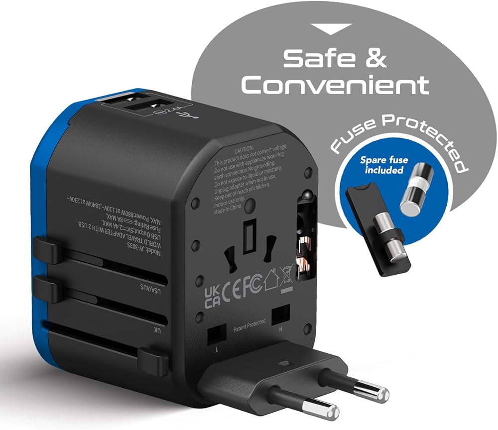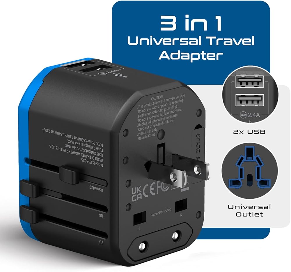 [العلامة التجارية لمحول السفر رقم 1] مجهز بمدخل عالمي 2 USB (2 4a) و1x USB من النوع C - مثالي للسفر - يستخدم مع الهواتف المحمولة iPhones والأجهزة اللوحية iPads وأجهزة الكمبيوتر المحمولة وغيرها من الأجهزة في أي مكان في العالم - بعض الاستثناءات المدرجة أدناه