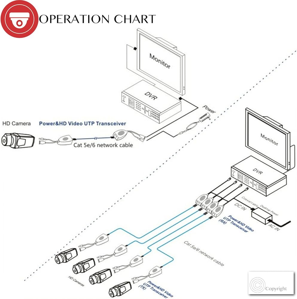 يسمح جهاز إرسال واستقبال الفيديو هذا بنقل فيديو سي سي تي في والطاقة ذات الجهد المنخفض عبر كابل يو تي بي. يتم توجيه الطاقة والفيديو عبر توصيلات UTP وRJ45.