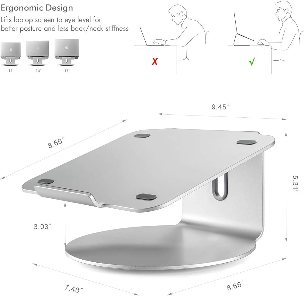 💻 كتابة مريحة - هل تعاني من آلام الرقبة والكتف عند استخدام الكمبيوتر المحمول الخاص بك؟ من خلال رفع الكمبيوتر المحمول الخاص بك بمقدار 5.31 بوصة عن مكتبك، يتيح لك حامل الكمبيوتر المحمول هذا الاستمتاع بارتفاع أفضل في الكتابة.