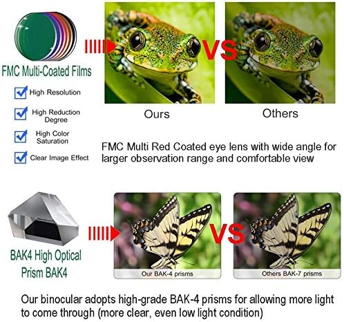 تقنية طلاء النطاق العريض من اف ام سي: مناظير السفر خفيفة الوزن مغطاة بنسيج منشور BAK4. تستخدم العدسة الشيئية غشاء بصري واسع النطاق متعدد الطبقات اف ام سي، والعدسة البصرية مصنوعة من طلاء اف ام سي. يمكن لجميع التصميمات أن تعكس الضوء في الغالب للحفاظ على صورة جيدة وتجعلك تستمتع بتجربة مذهلة.