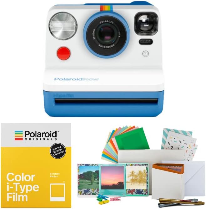 تتضمن المجموعة: كاميرا فورية بولارويد Originals Now Viewfinder i-Type مع أفلام فورية ملونة قياسية لكاميرات i-Type (8 تعرض)، ومجموعة الملحقات مع ألبوم معلق شفاف وإطار على شكل حرف V وإطار ورقي