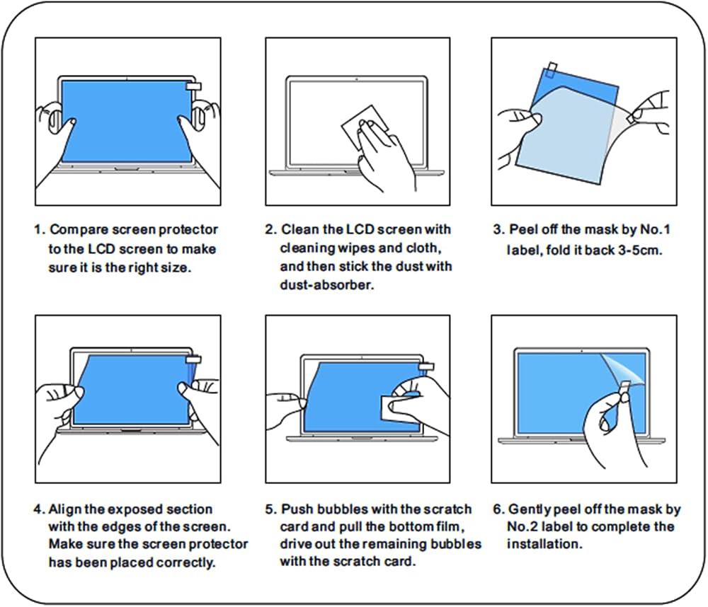 - تركيب سهل: نوصي بلصق بعض الماء أو الكحول بالمناشف الخاصة بنا أثناء مسح الشاشة.