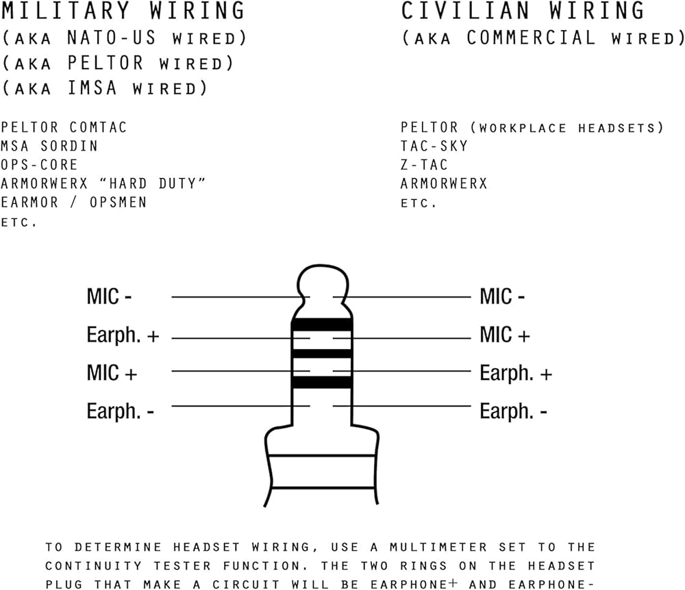 - الأسلاك المدنية. لا تعمل مع سماعات الرأس السلكية العسكرية.