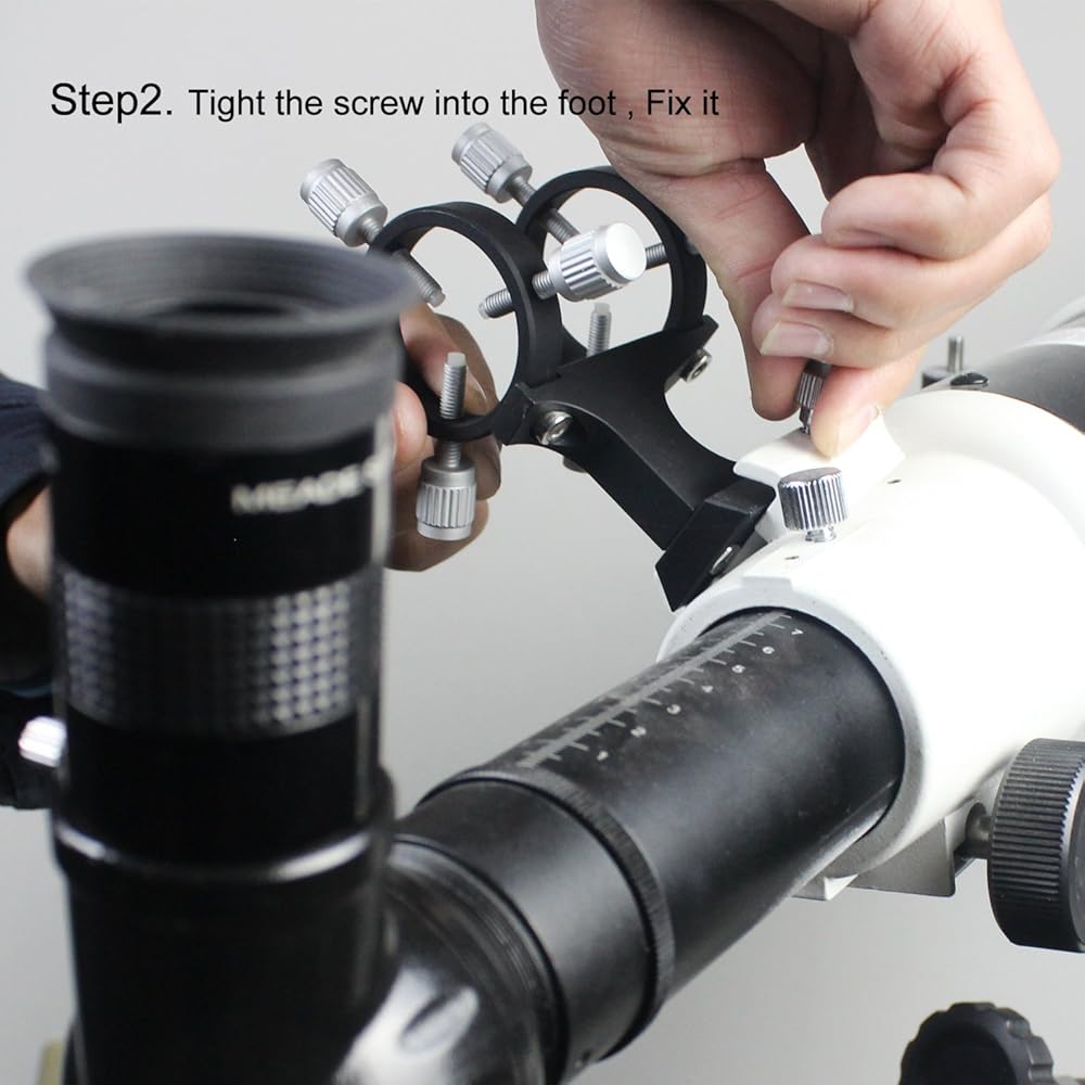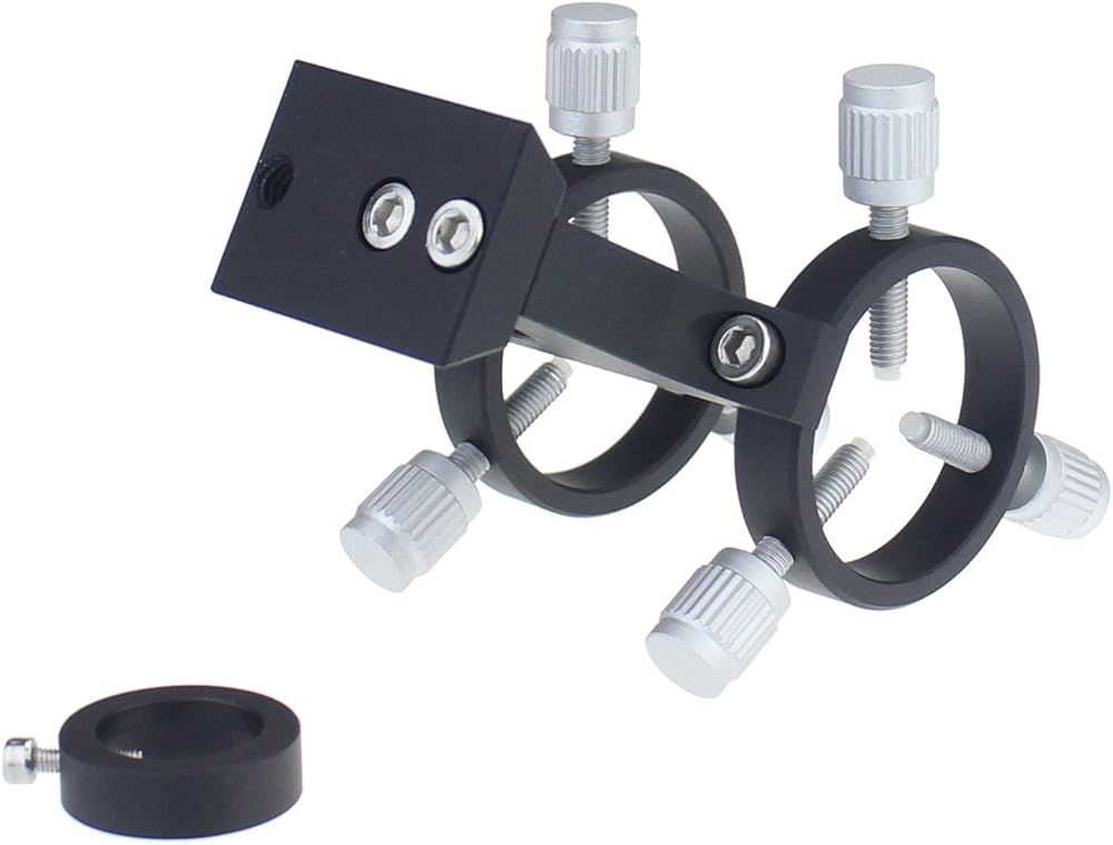 إذا كان لديك مؤشر ليزر، وترغب في استخدامه على التلسكوب الخاص بك كمكتشف، فإن دعامة الليزر المعدنية ذات الحلقة المزدوجة هذه ستفي بالغرض. تحتوي قاعدة الدعامة على فتحة محفورة مقاس 1/4 بوصة تناسب معظم مجموعات الأنابيب البصرية للتلسكوب. يمكنك إجراء تعديلات ثلاثية النقاط على محاذاة مؤشر الليزر باستخدام ستة مقابض مخرشة كبيرة الحجم لتسهيل الأمر يمكنك التعامل معها في الظلام أو باستخدام القفازات، وستقبل الحلقات معظم مؤشرات الليزر، ويمكن إزالتها بسرعة عندما لا يكون التلسكوب الخاص بك قيد الاستخدام، بحيث يمكنك استخدام مؤشر الليزر الخاص بك لمهام أخرى.