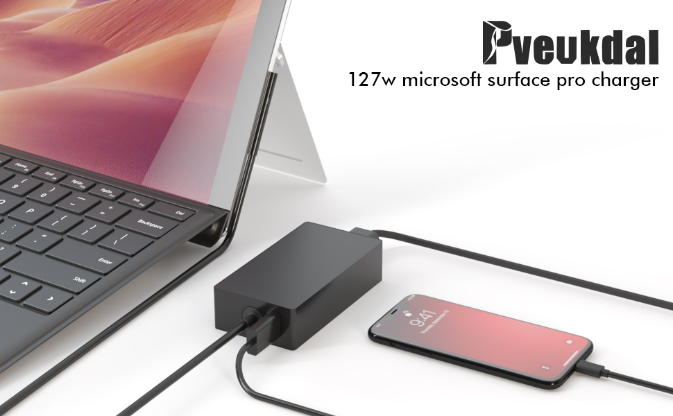 • يتم شحن مصدر الطاقة السطحي بقدرة 127 واط بشكل أسرع من شاحن الكمبيوتر المحمول السطحي بقدرة 102 واط. إنه أكثر ملاءمة لك لاستخدام الكمبيوتر المحمول الخاص بك. يتيح لك منفذ USB الإضافي (5 فولت 1 أمبير) شحن جهاز آخر مثل هاتفك في نفس الوقت.