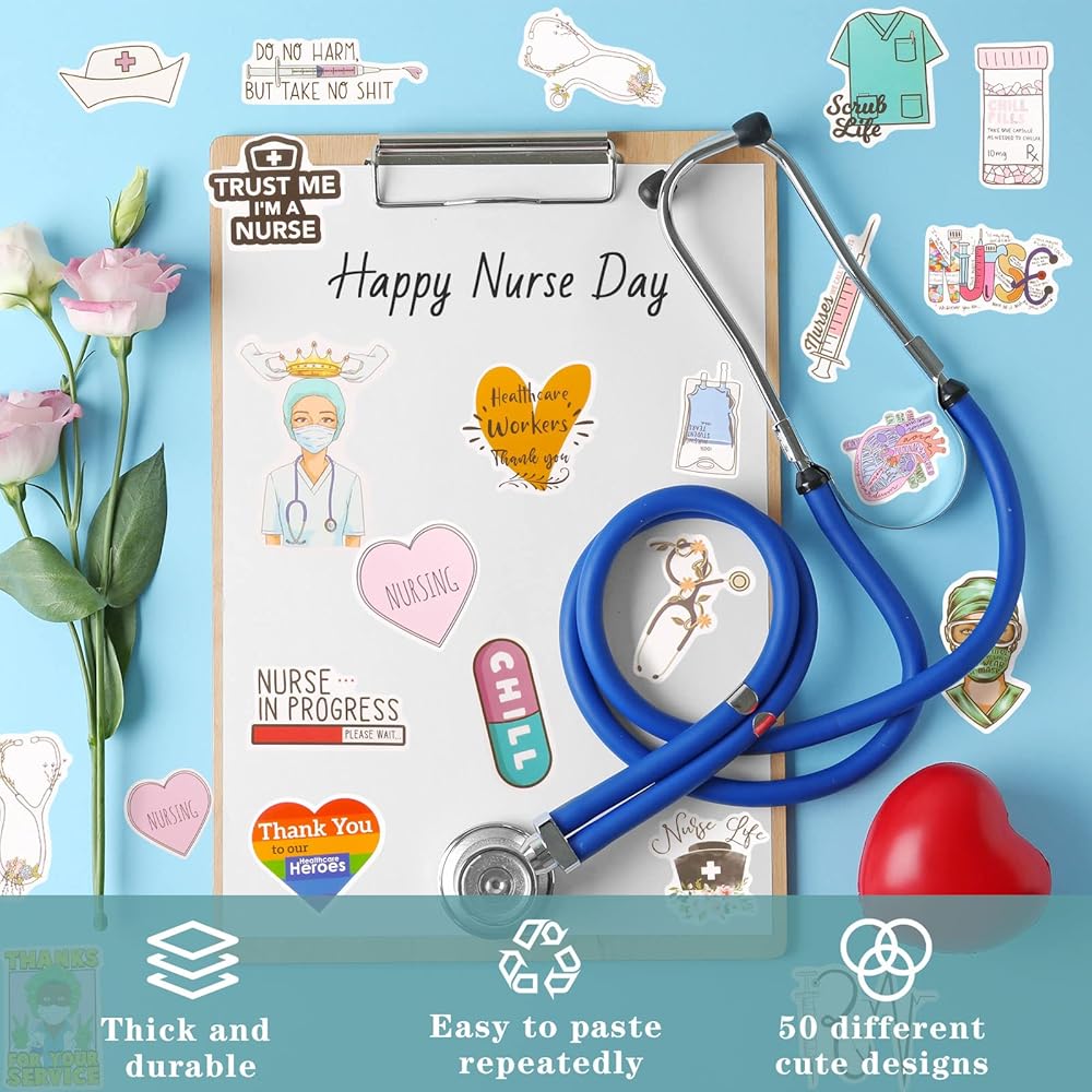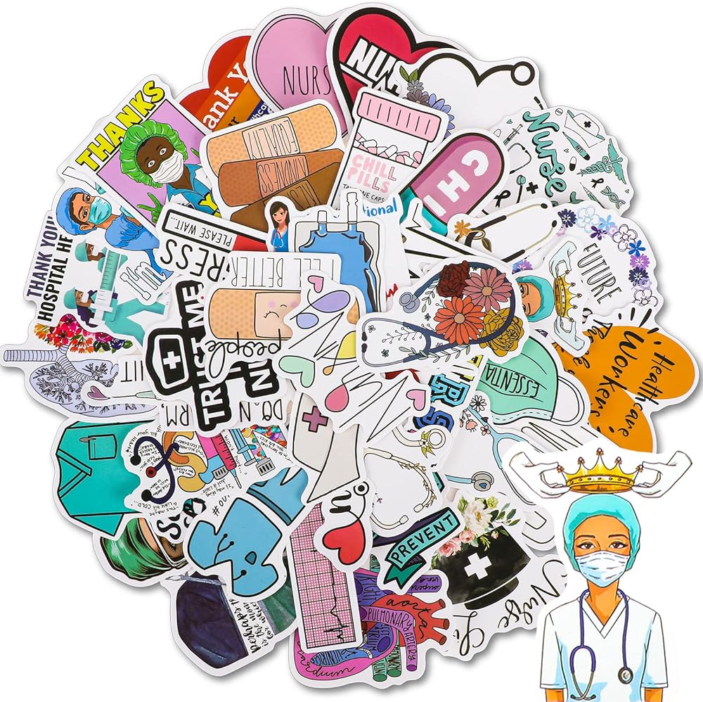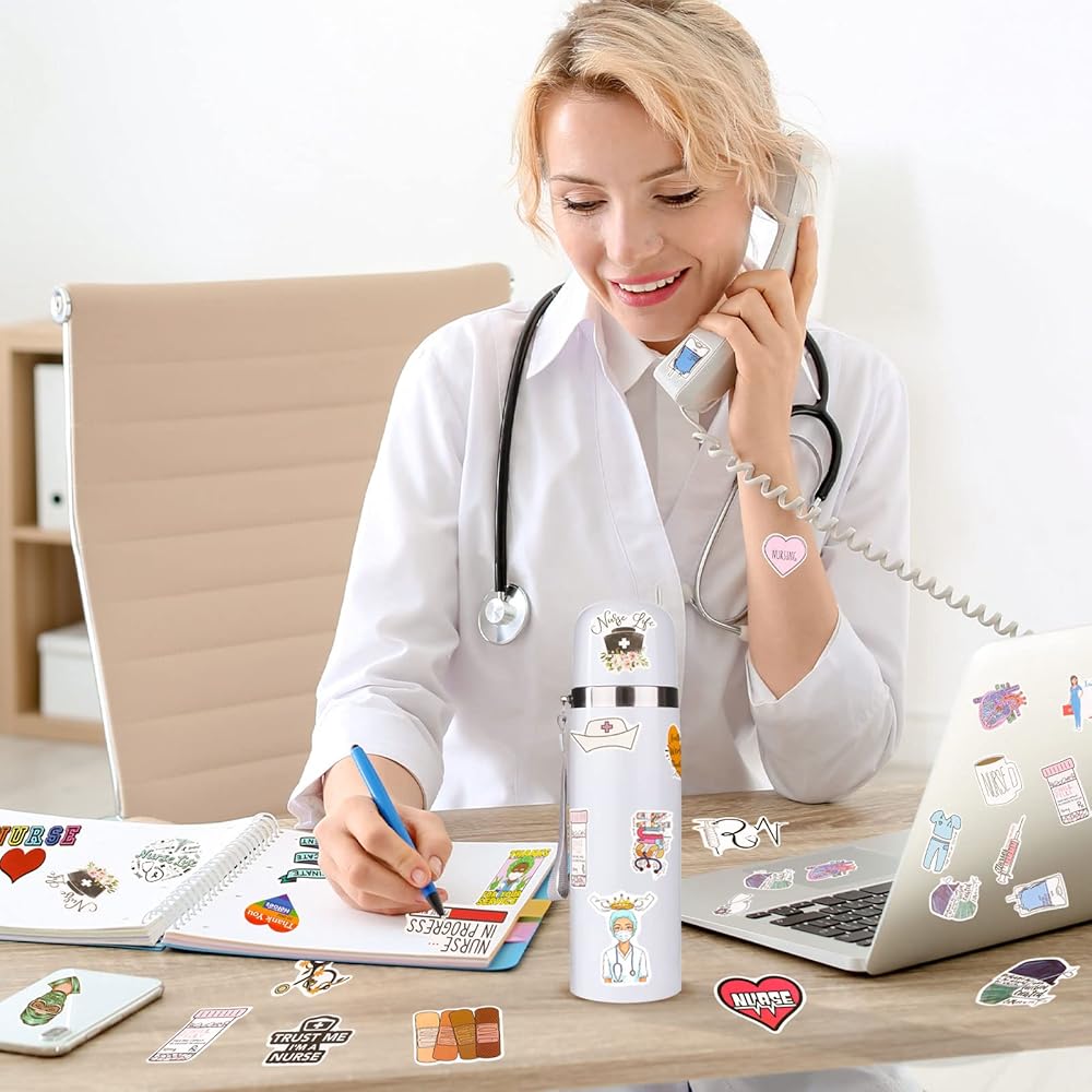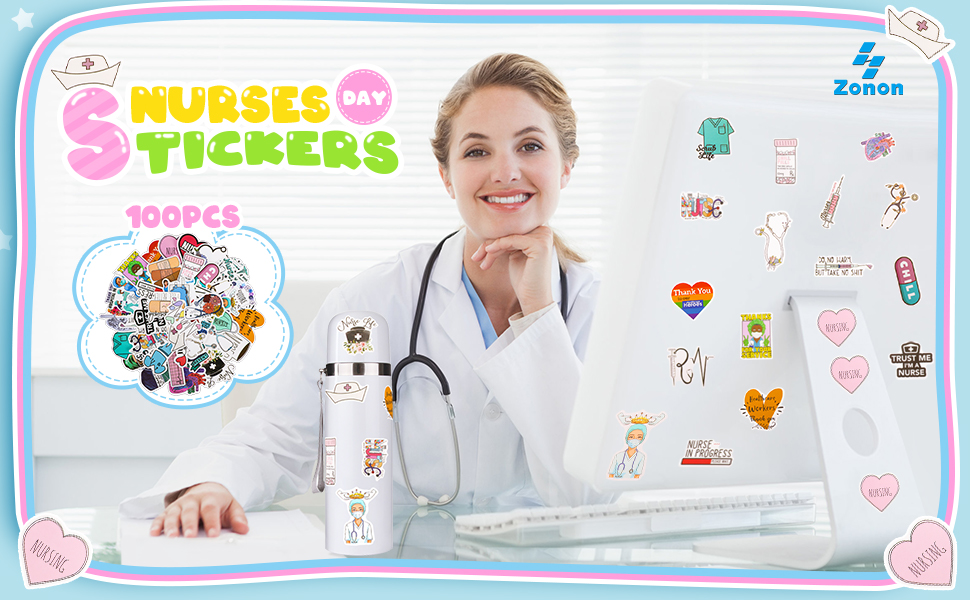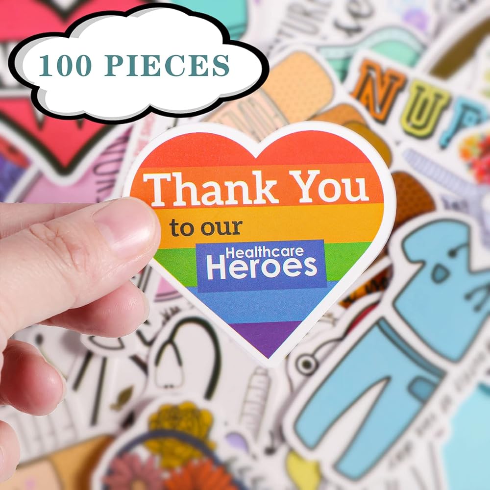 100 قطعة من ملصقات يوم الممرضات الصغيرة للمستشفى من الفينيل ملصقات مقاومة للماء ملصقات ممرضة مقاومة للماء ملصقات الكمبيوتر المحمول الطبية ملصقات كرتونية من الفينيل للتمريض لتزيين زجاجة المياه والكمبيوتر المحمول