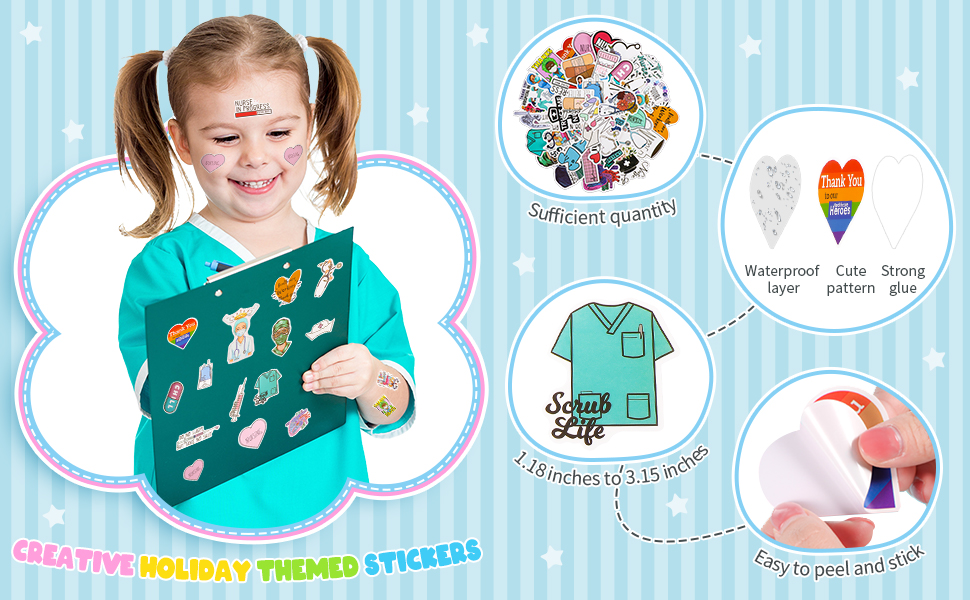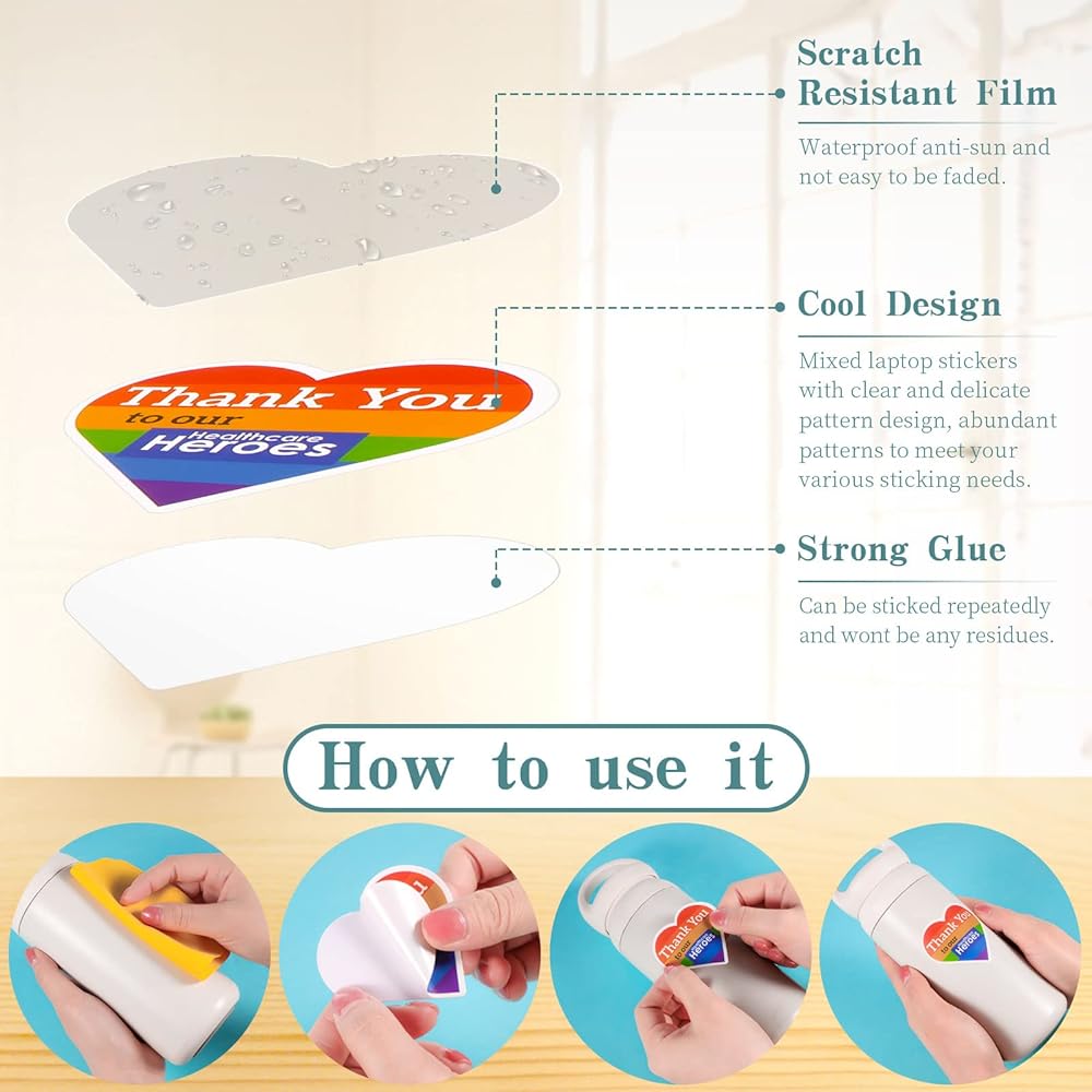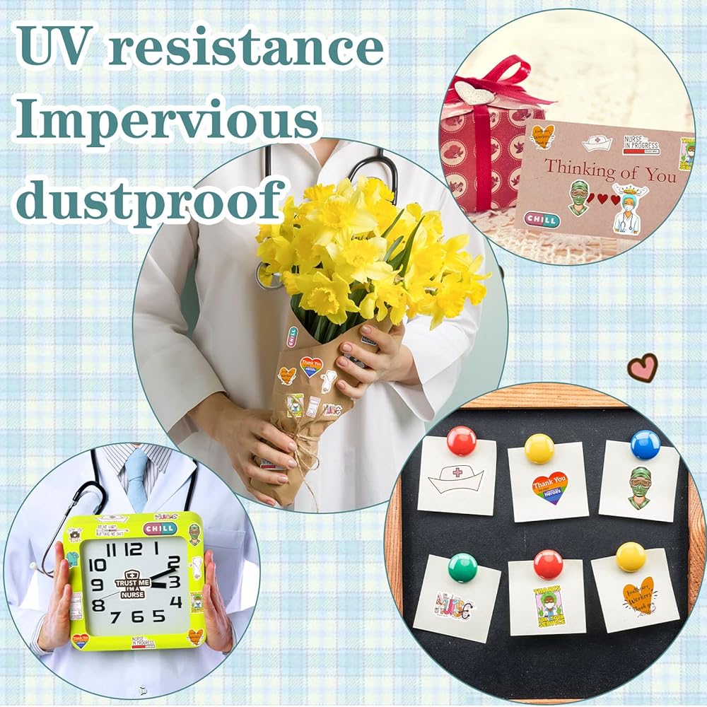 مجموعة واسعة من الاستخدامات: يمكن وضع هذه الملصقات الخاصة بالممرضات على نطاق واسع لتزيين عناصر مختلفة، مثل زجاجات المياه، والأكواب، وأجهزة الكمبيوتر المحمولة، وسجلات القصاصات، والجيتار، وحقائب السفر، وألواح التزلج، والهواتف المحمولة، وحافظات الهواتف المحمولة، والثلاجات، والخوذ، والمصدات، والسيارات، الدراجات، الدراجات النارية، النوافذ، الخزانات، الطاولات، صناديق الأقلام، الجدران، المرايا، المجلدات والمزيد