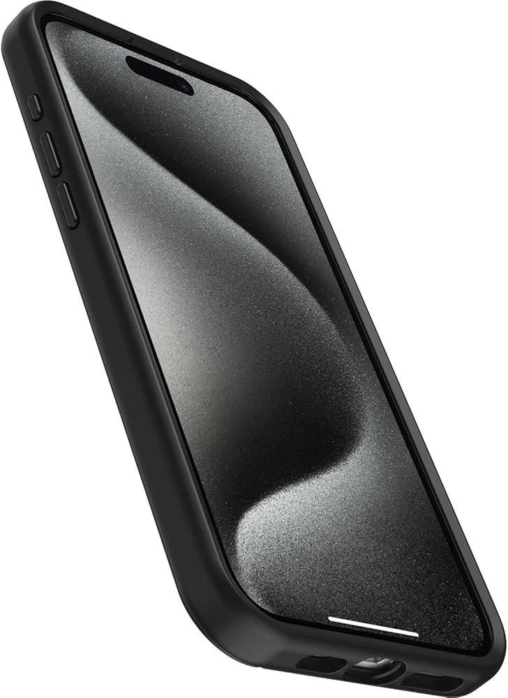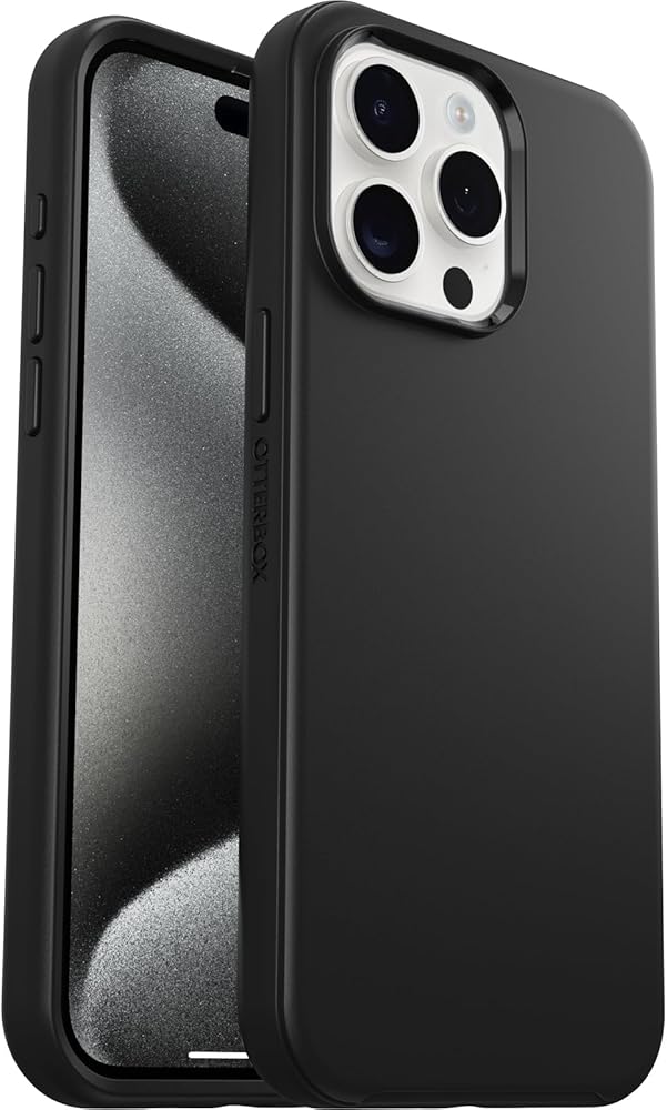 حافظة OtterBox iPhone 15 Pro MAX (فقط) من سلسلة Symmetry - سوداء، يتم تثبيتها على MagSafe، حواف مرتفعة وأنيقة للغاية تحمي الكاميرا والشاشة (يتم شحنها في حقيبة من البوليستر، مثالية لعملاء الأعمال)