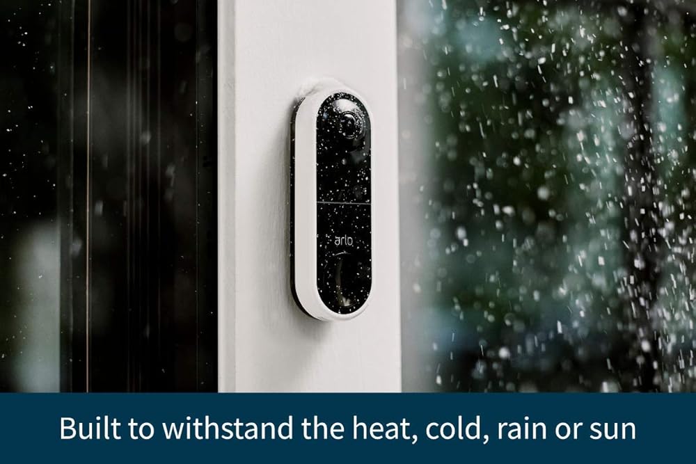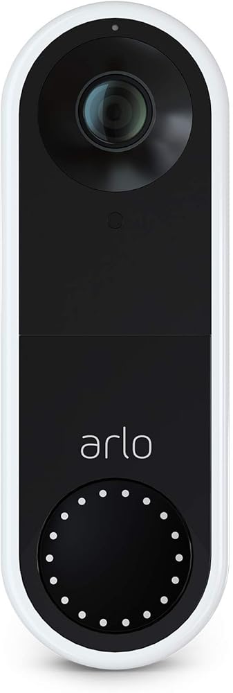 جرس باب فيديو سلكي أساسي من Arlo - فيديو عالي الدقة، عرض 180 درجة، رؤية ليلية، صوت ثنائي الاتجاه، مباشر إلى شبكة Wi-Fi لا حاجة إلى محور، سلكي، أبيض (متجدد)