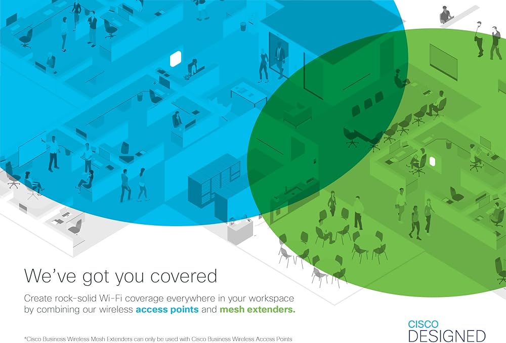 متوافق مع موسعات شبكة سيسكو بيزنس 100 لتوسيع شبكة واي فاي الخاصة بك بسرعة.